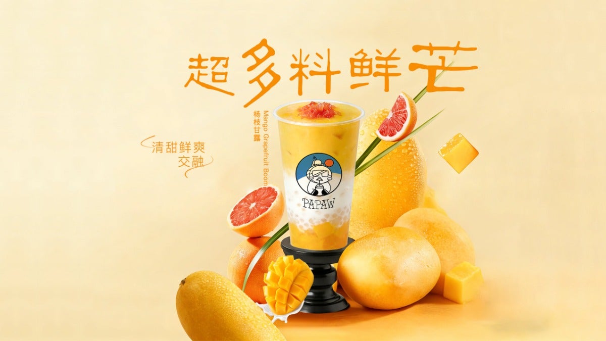 Grape, grape syrup, sparkling water, sugar, ice.£4.60VeganMango Soda 芒果苏打