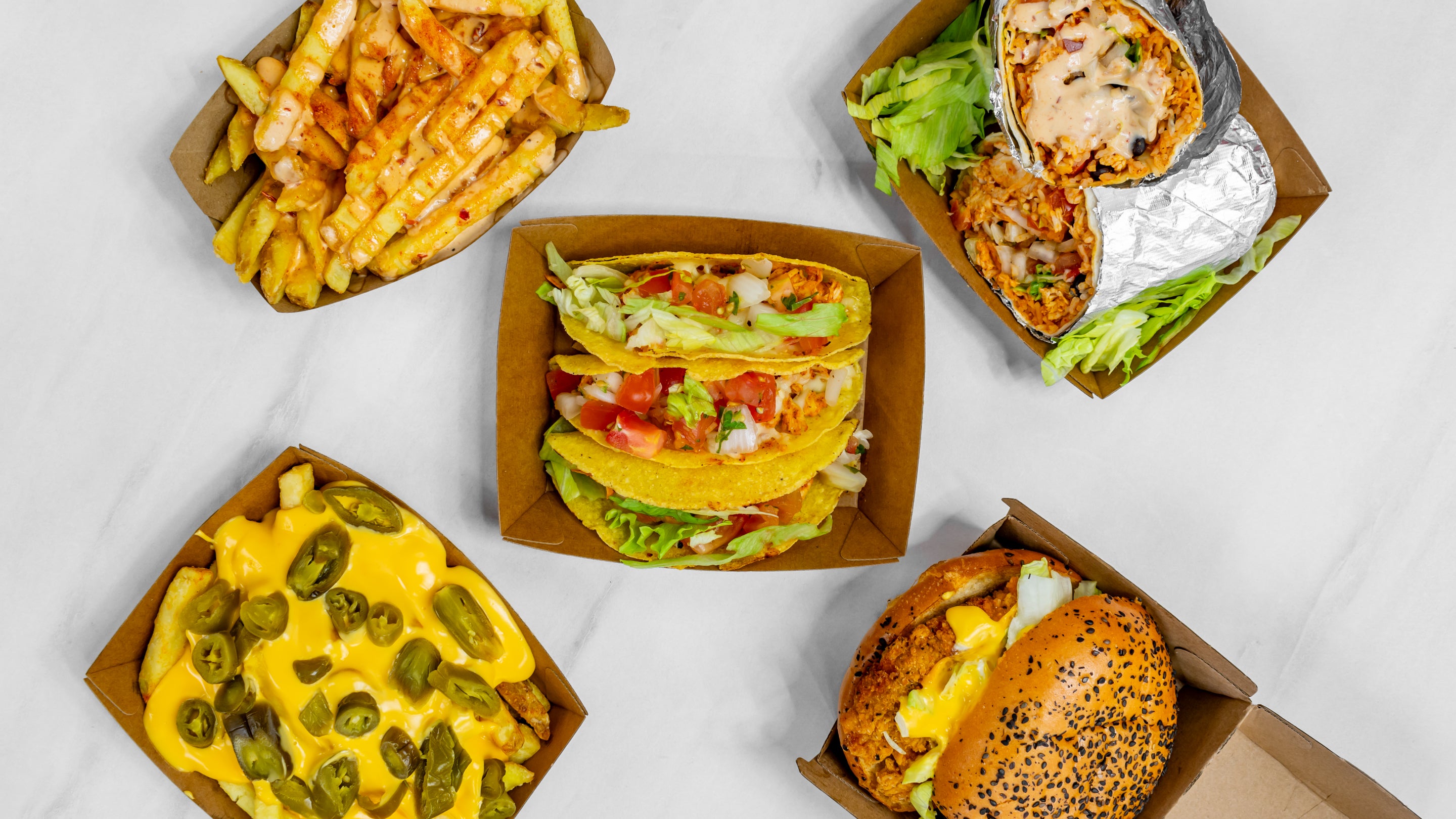 Burgers , Wraps , Grilled Peri Peri Chicken , Rice , Fries ,Sides , Loaded Fries Shakes, DrinksFree delivery