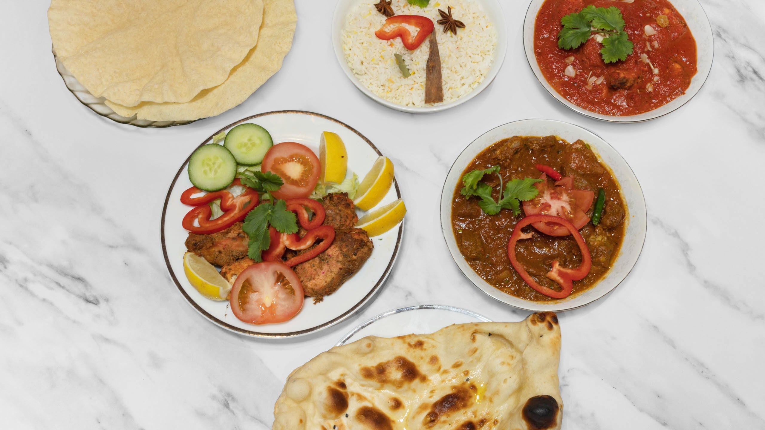 Special Pilau Rice, Biryani Spices. Served with Salad & Veg Curry Side Dish
