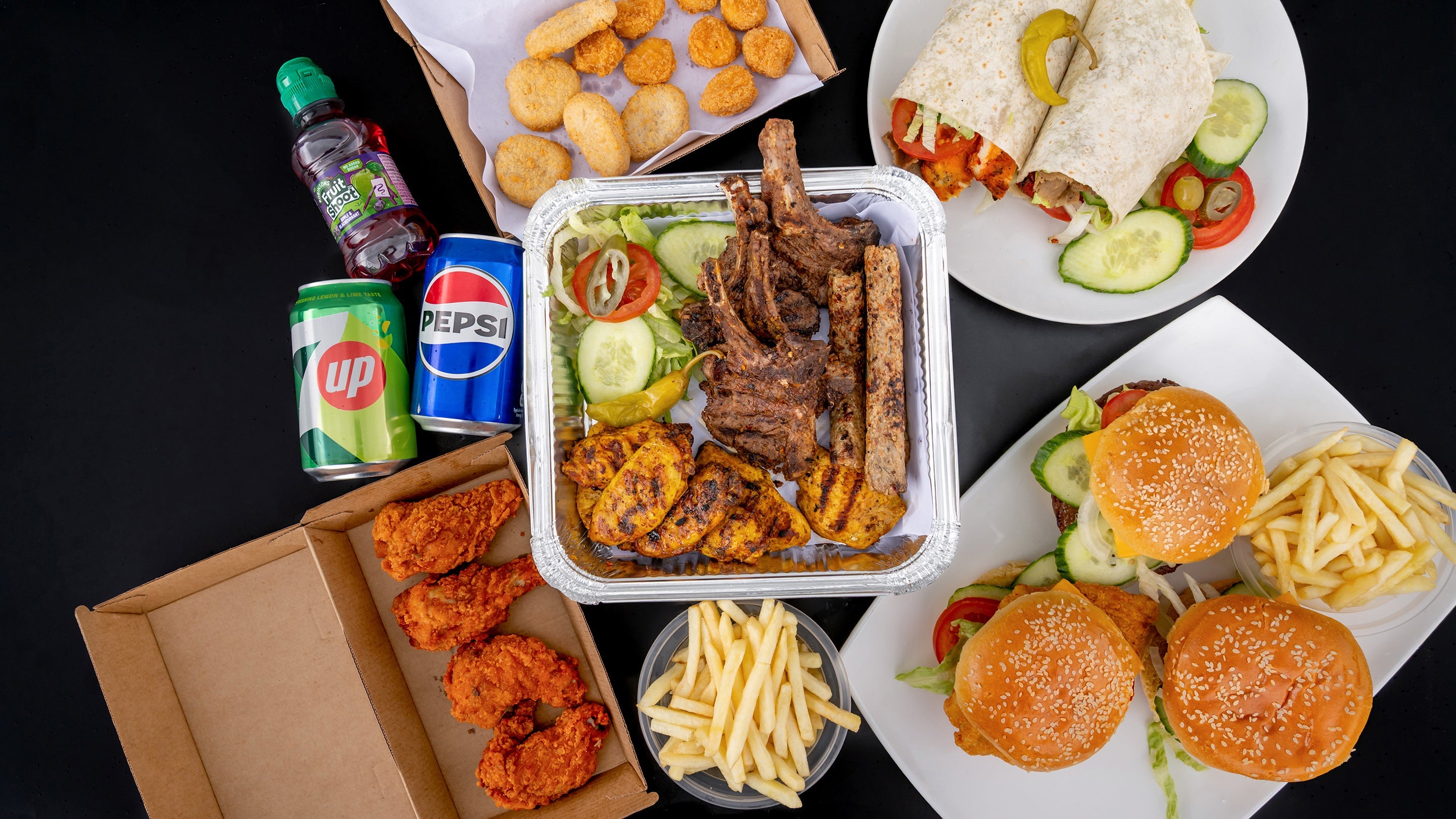 Cheese burger, 2sheesh kebab with fries£9.99Trap box