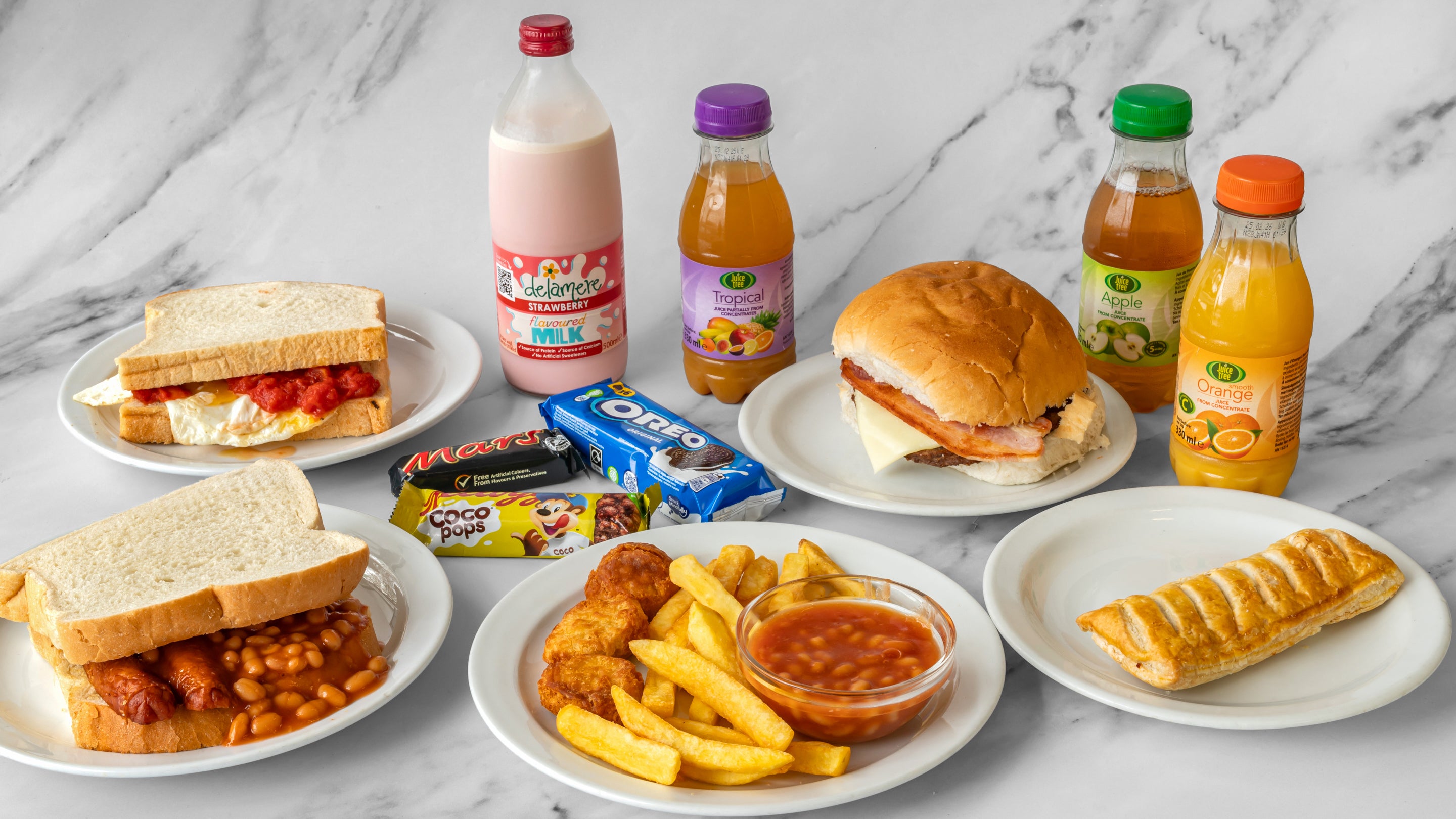 Bacon egg sausage and tomatoes on 3 slices of extra thick white bread.£6.50Bacon and Sausage