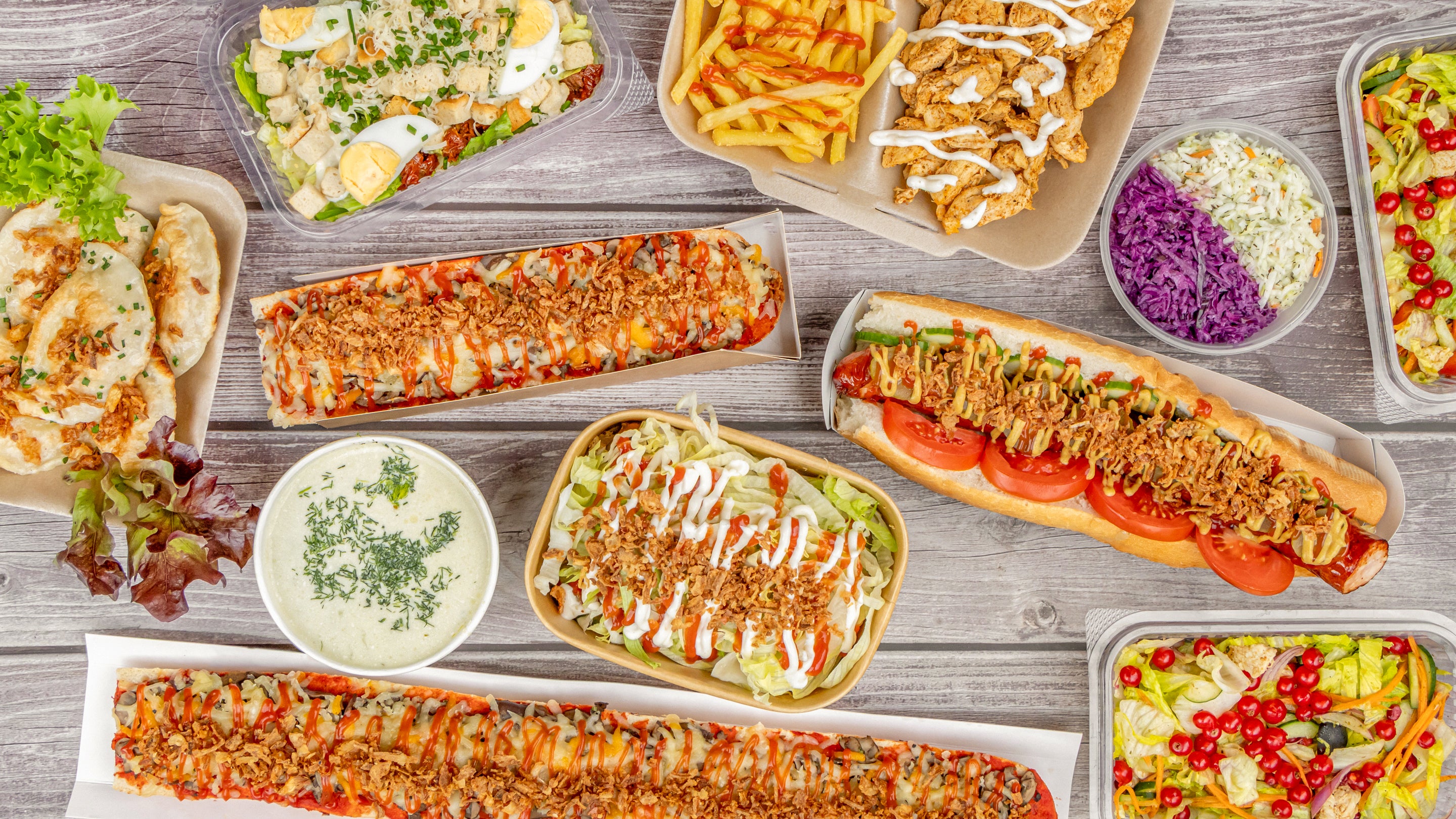 Hot dog with a small Polish sausage, tomato, cucumber, gherkin and onion.£9.50Large Hot Dog