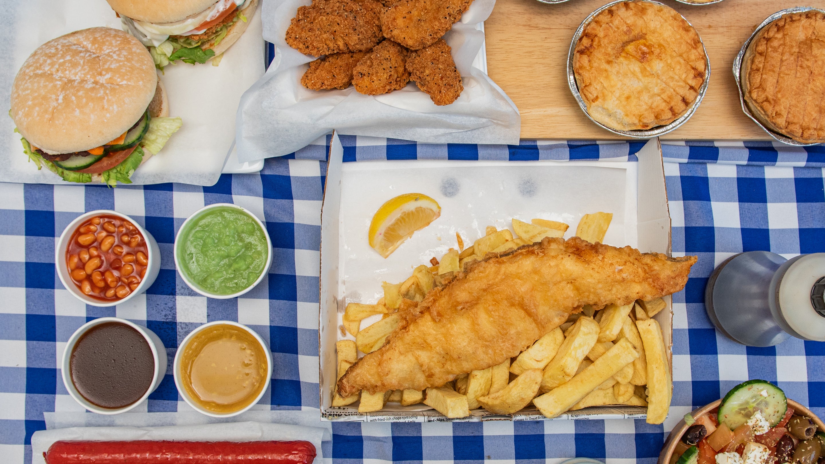 Chicken breast coated in batter, served in a toasted flour bap with a choice of lettuce, cucumber, tomato and onion. Please choose your salad & sauce options!£6.48Fish Burger