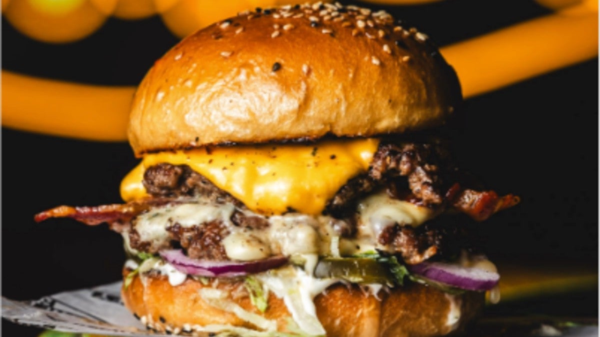 2 oklahoma style onion smashed patties,double american cheese(Double patty in photo)£12.95