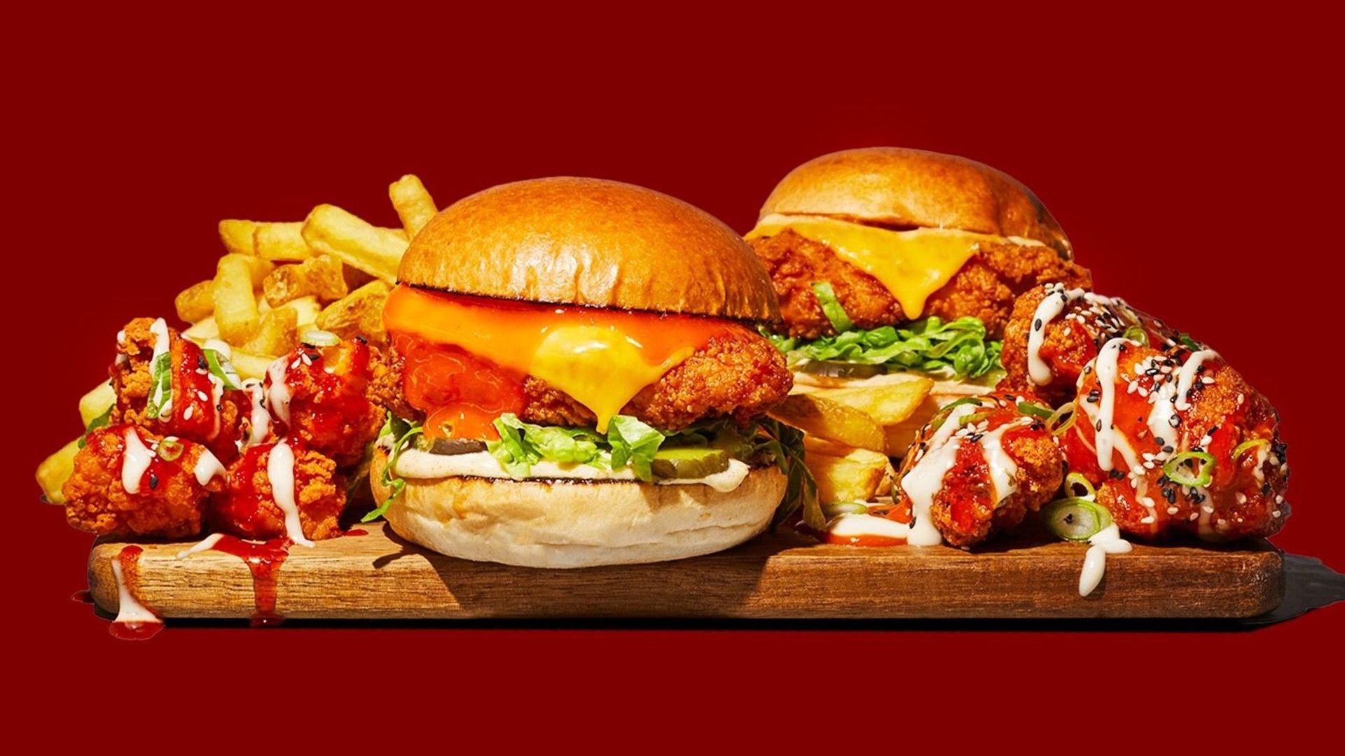 Grilled chicken tikka breast with lettuce, onions, mayonnaise, and chilli sauce in a toasted seeded brioche bun£9.95Smashed 'Big 'N' Chicken Burger