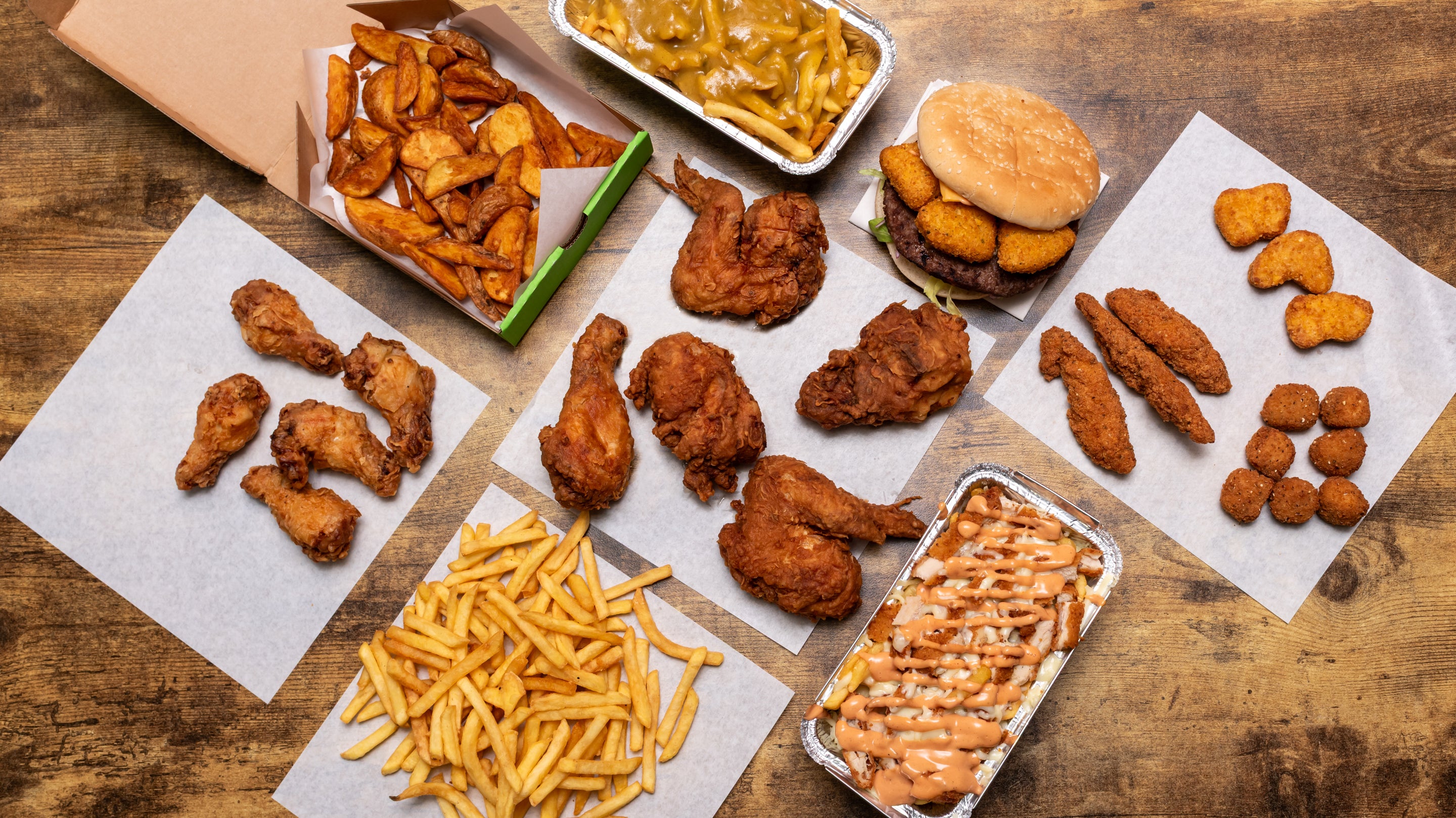 10 pcs fried chicken, 6 wings, 2 regular fries, and 1.5 ltr drink.£26.00Flavoured Wings
