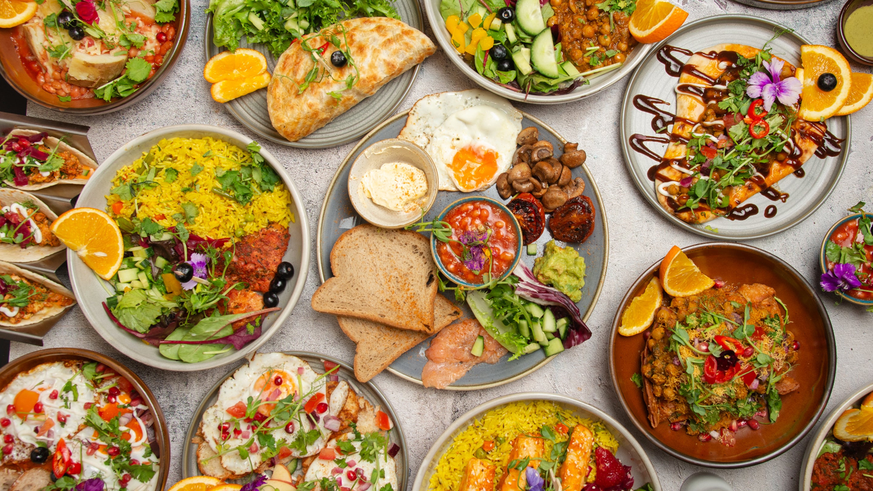 Bacon or sausages, masala potatoes, grilled tomatoes, tadka beans, toast, toasted mushrooms& fresh coriander.£14.82Spiced Vegan Sunrise (Ve)
