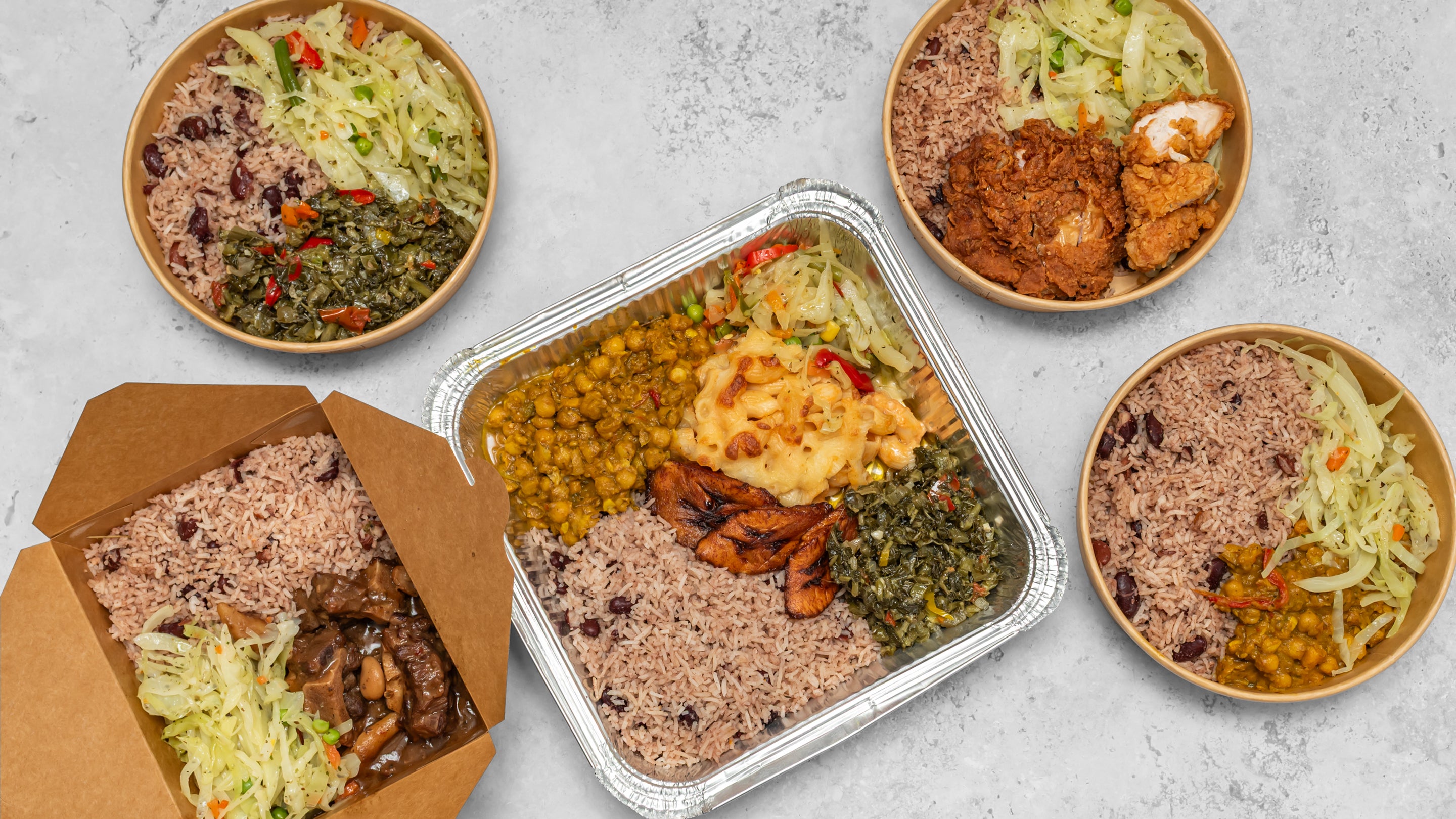 £10.00Chickpea Curry, Sautée Callaloo, Fried Plantain, Mac and Cheese, Mix Vegetables