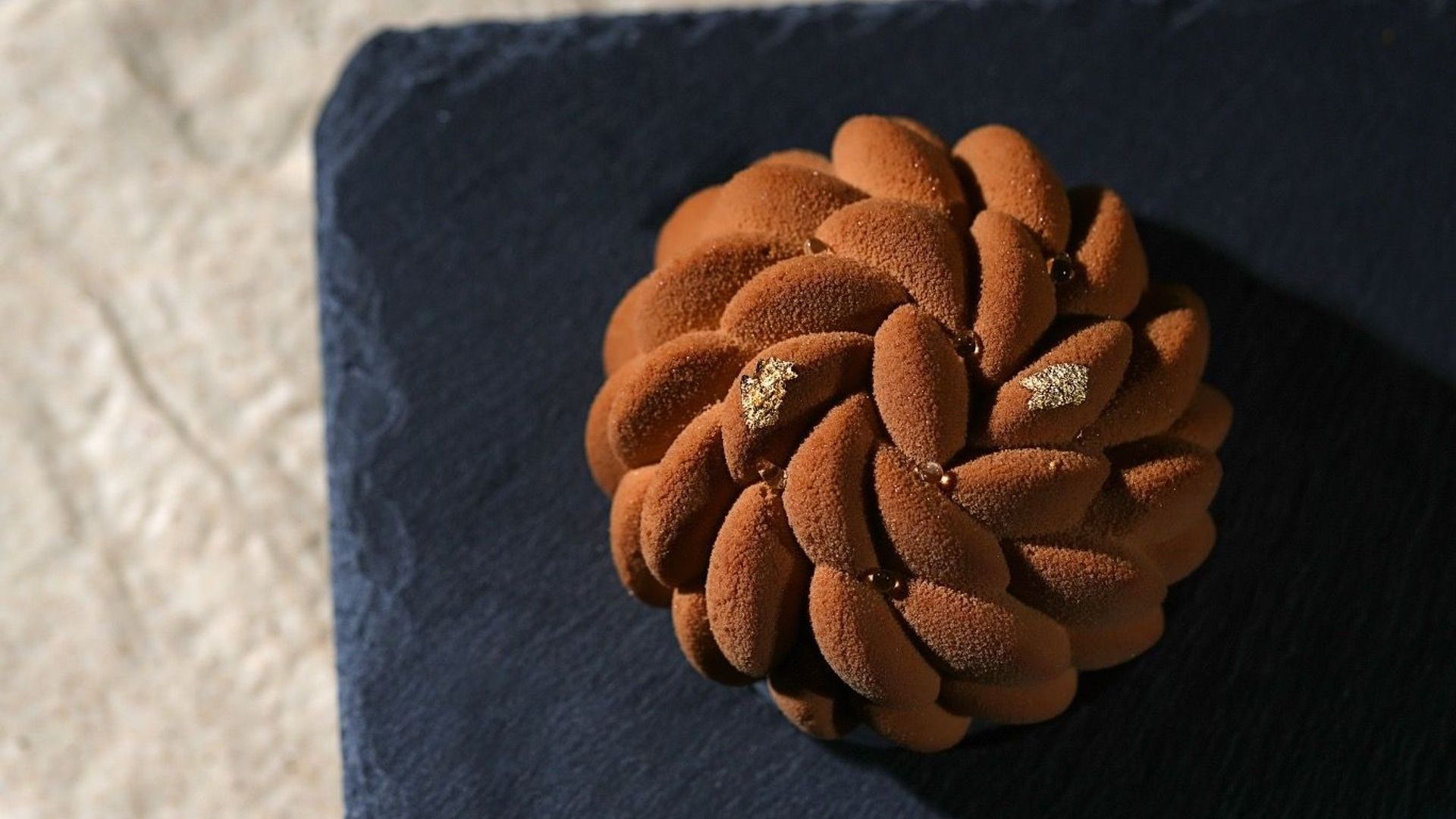 A luscious pecan sponge layered with crunchy pecan filling, roasted pecans, and velvety dark and milk chocolate ganache. Finished with micro sponge and a roasted pecan for the perfect bite.0 calories