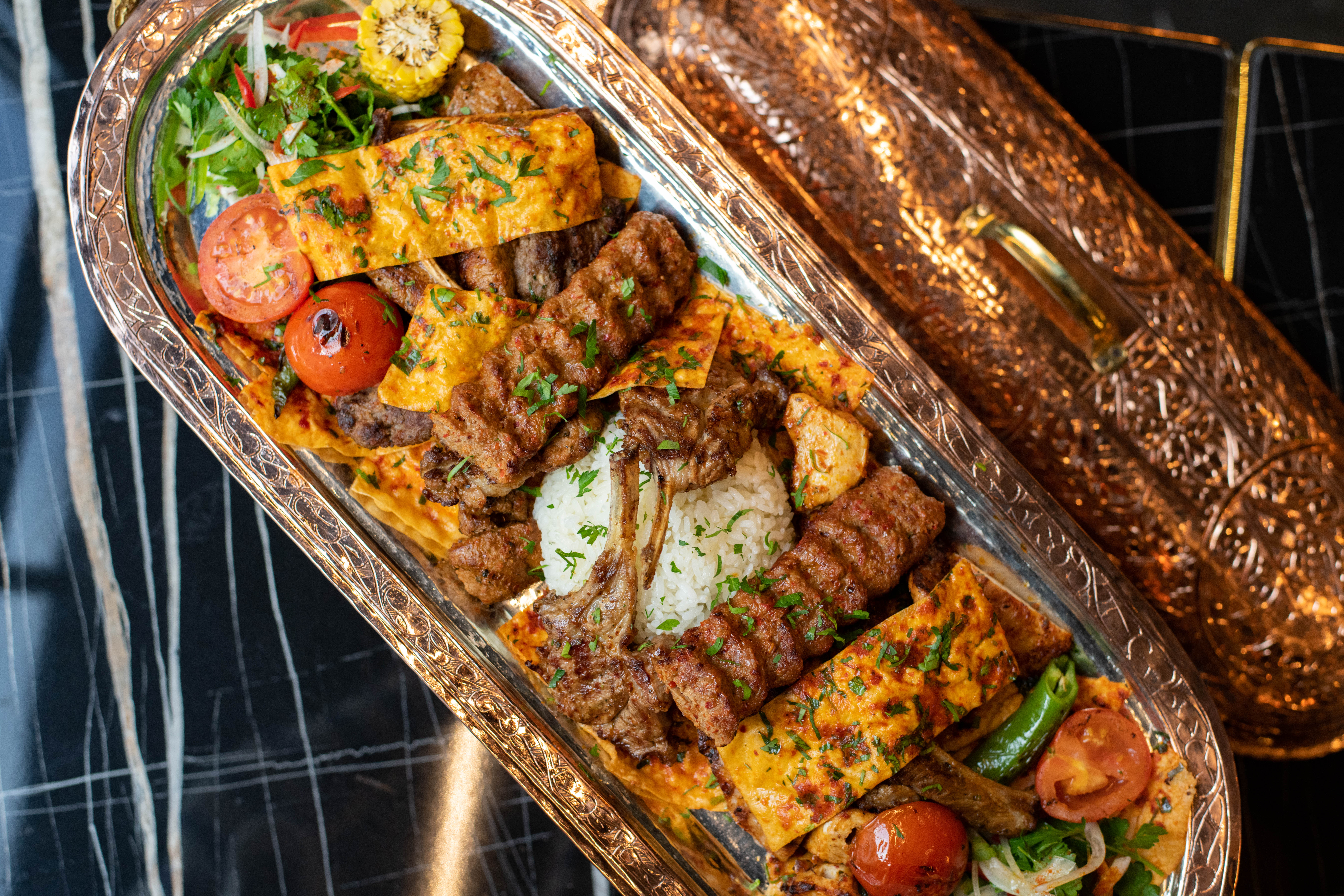 Serves 2. Served with baldo rice, chickpeas, and vegetables. Succulent whole chicken, slow-cooked in a rich, aromatic stock to lock in tenderness and flavour. Flame-grilled to perfection over charcoal with our signature marinade. Served as part of our indulgent signature shish platter on a bed of steamed baldo rice with chickpeas and vegetables. Paired with fresh rocket salad and a rich, velvety demi-glace sauce. Ideal for 2 persons.£39.9520% offTavuk Pirzola