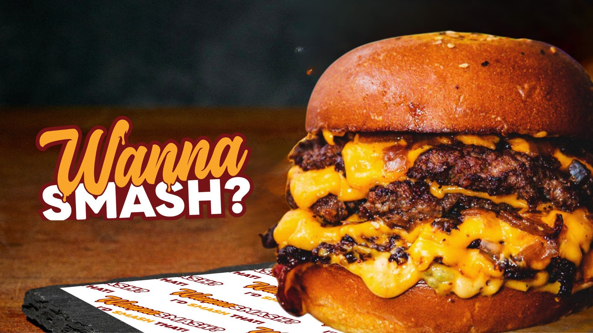 So, do you Wanna Smash? ;) Our burgers will satisfy your deepest desires. A perfect blend of juicy, sizzling goodness that hits all the right spots - choose your toppings to make it the ultimate match to your Type. Make it a quick ting, or a long all night lasting affair, we will have you craving for more!Free delivery