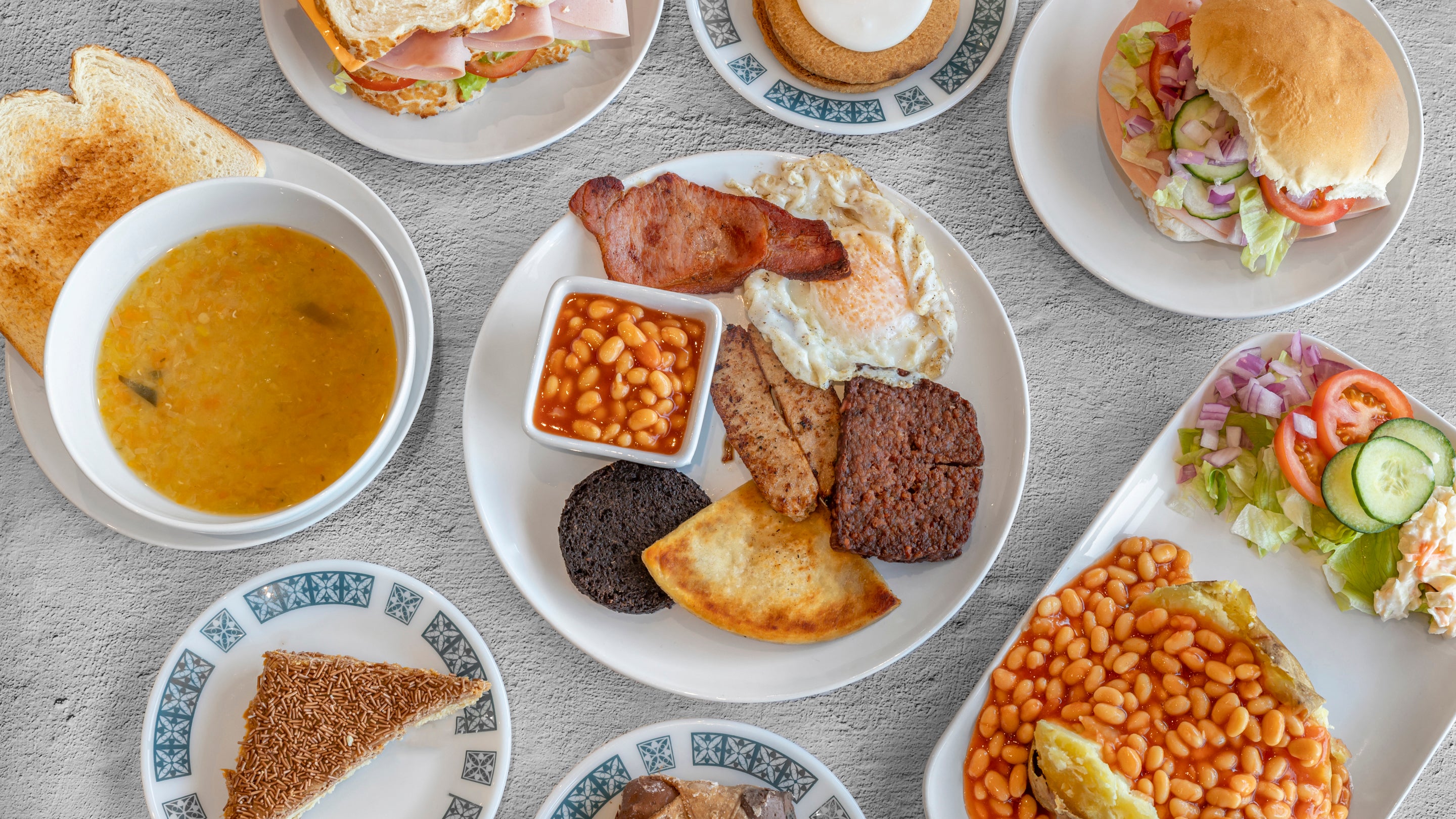Egg, sq sausage , links , bacon , black pudding , potato scone & beans . Served with toast.£9.95