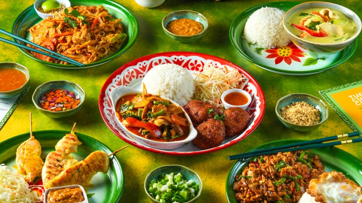 Chicken satay - Sweetcorn patties - Thai Spring Rolls - veg tempuraThai style curry with haddock - Stir Fried Chicken in oyster sauce - Spicy stir fry with pork and basil + Thai Matsaman curry with beef potatoes & peanutsSides: Broccoli in oyster sauceThai prawn crackers Thai fragrant rice£95.80