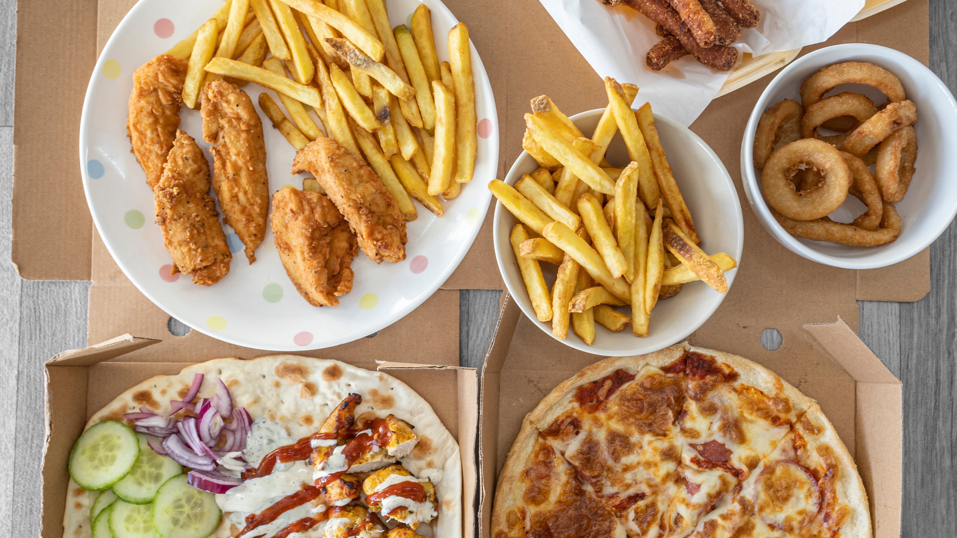 Any 12" Pizza, Any Smash Burger, Any Wrap, 3x Chips, 3x Cans Of Drink£27.90