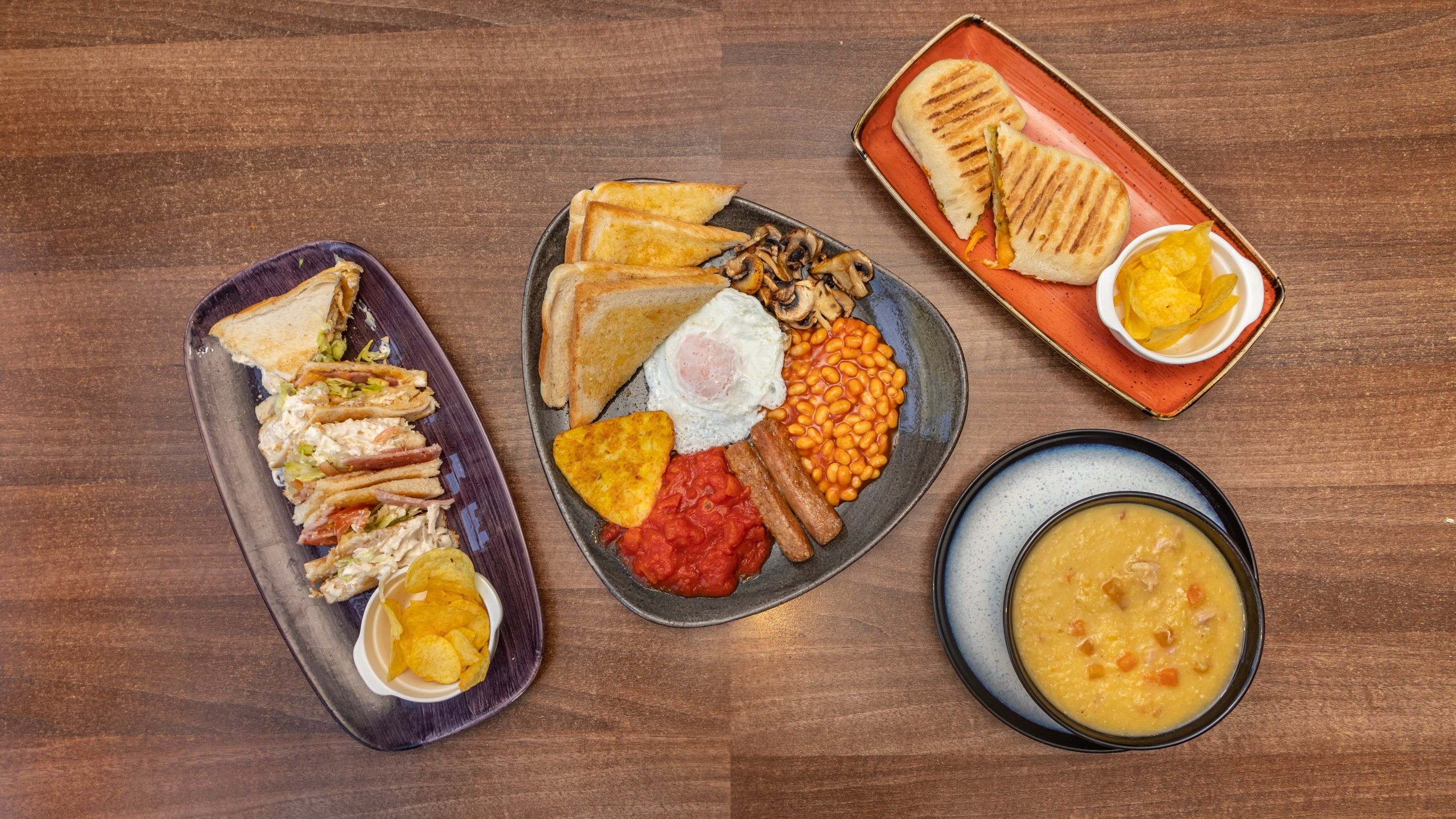 A warm toasted sandwich filled with a hearty blend of seasoned hash and melted cheese, delivering a satisfying crunch in every bite.£4.80Vegetarian