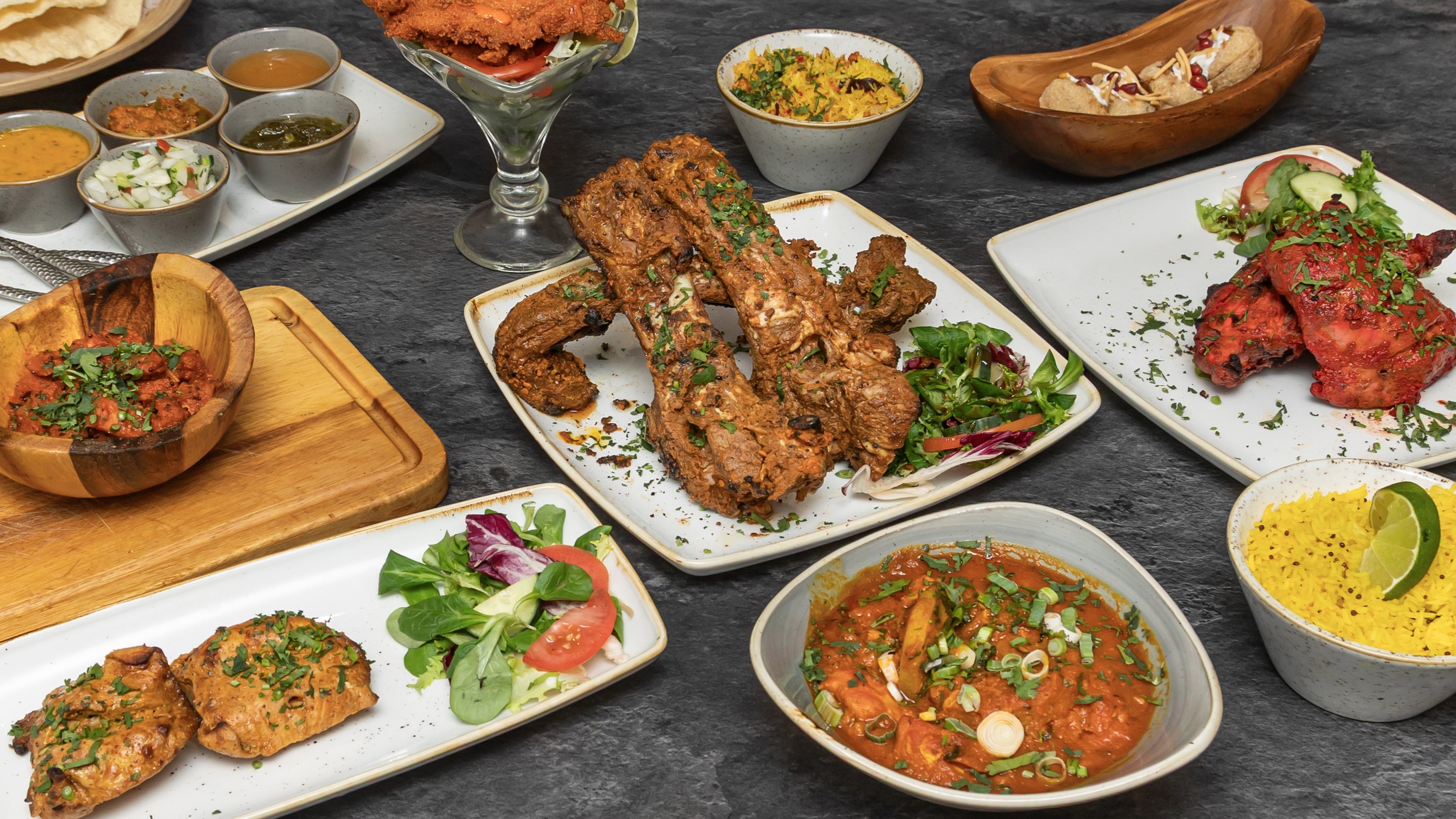 Tomato, onion, cucumber, limes, green chillies are gently mixed and served on a dressed platter.£3.50Laccha Salad