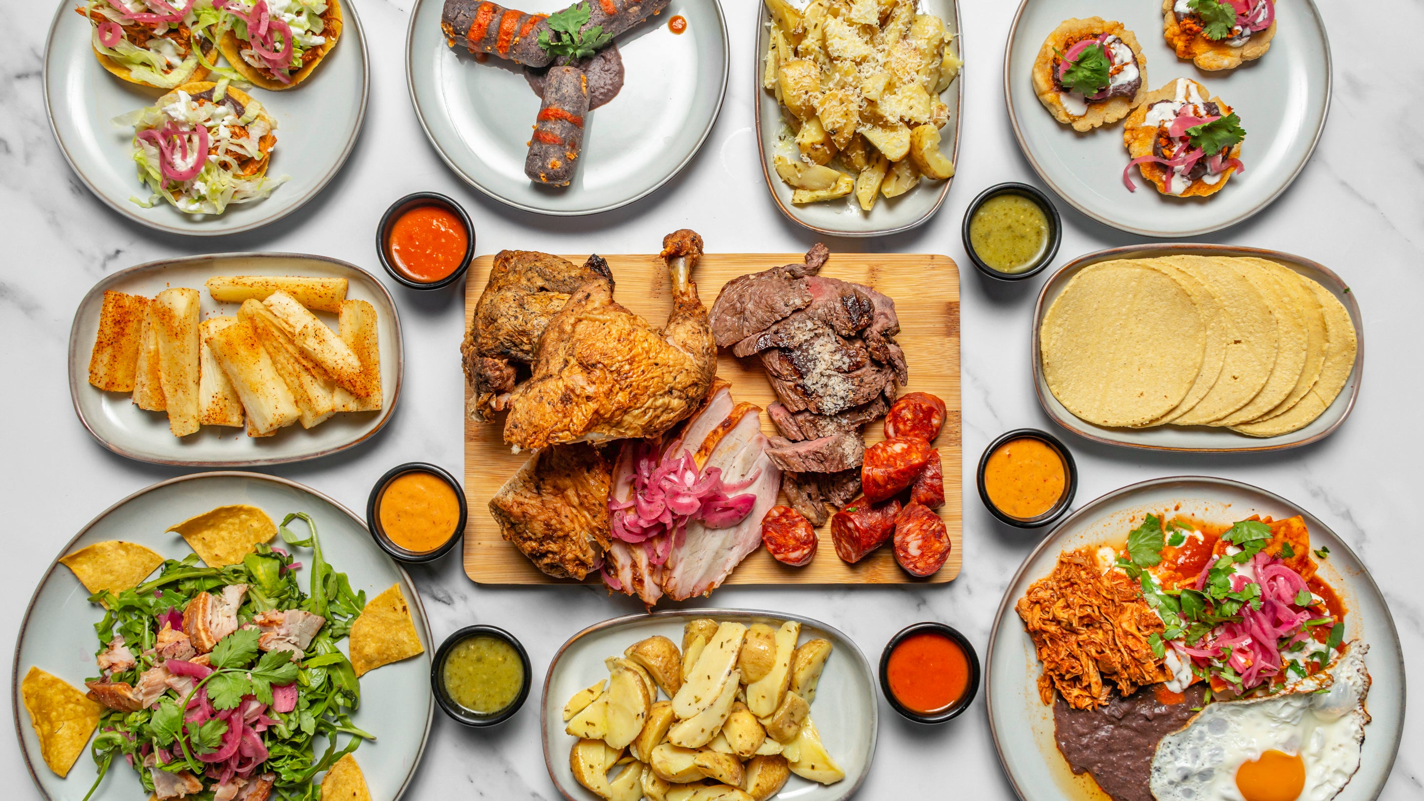 Pork belly Chicharron, Picanha, half Chicken, Chorizo, Tajín Yuca Fries, variety of 3 sauces and 8 corn tortillas. (GF)£62.50