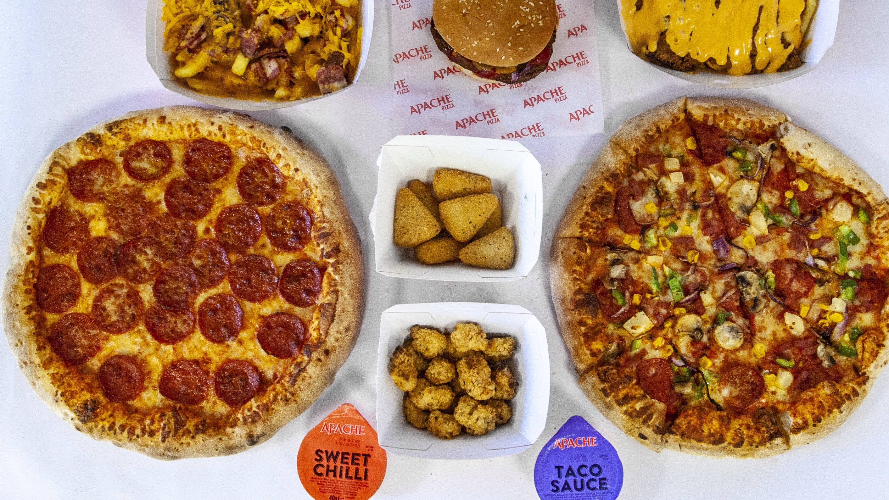 Peri peri chicken, jalapenos, sweetcorn and melted cheese.£6.49
