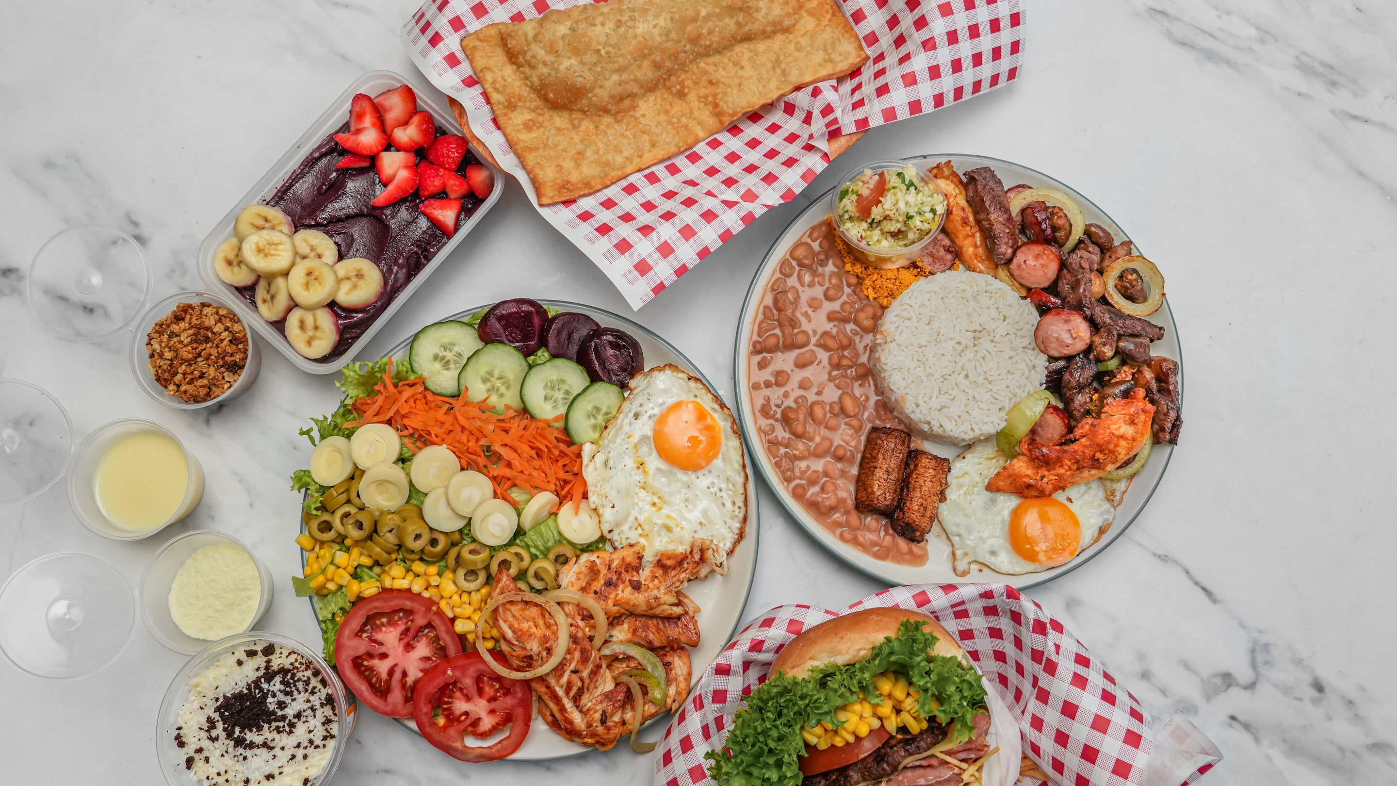Meals include Rice, beans, cassava flour, fried egg, cassava,mayo salad & vinagret salad.£21.00PF Mixed Meat Meal
