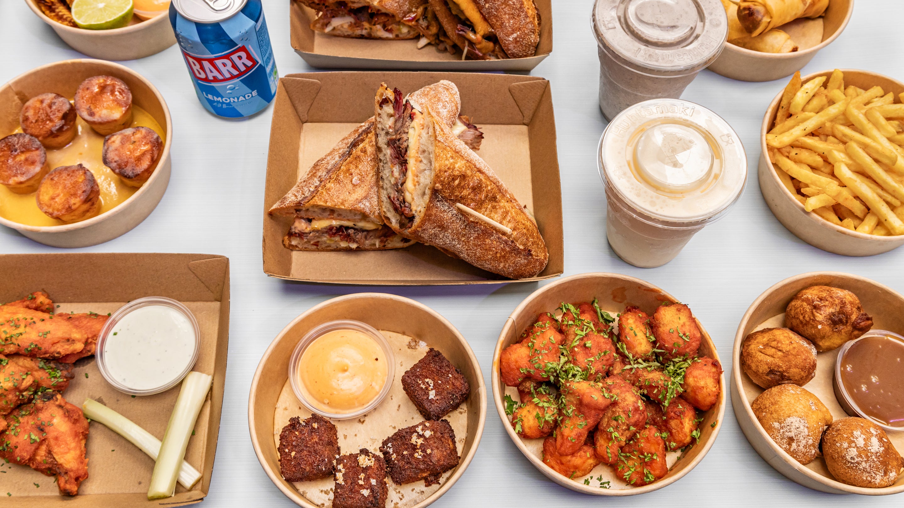 Smoked chicken thighs with drizzle of hot honey , Fries , Pickled Onion & Gherkins.£14.94