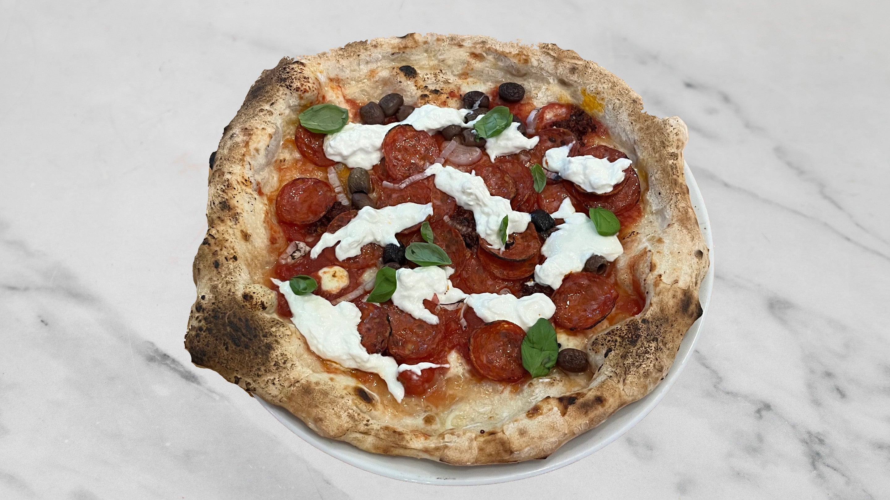 Tomato base, pepperoni, mozzarella, spicy chilli honey, free aioli dip£14.50The Brick Lane Pizza