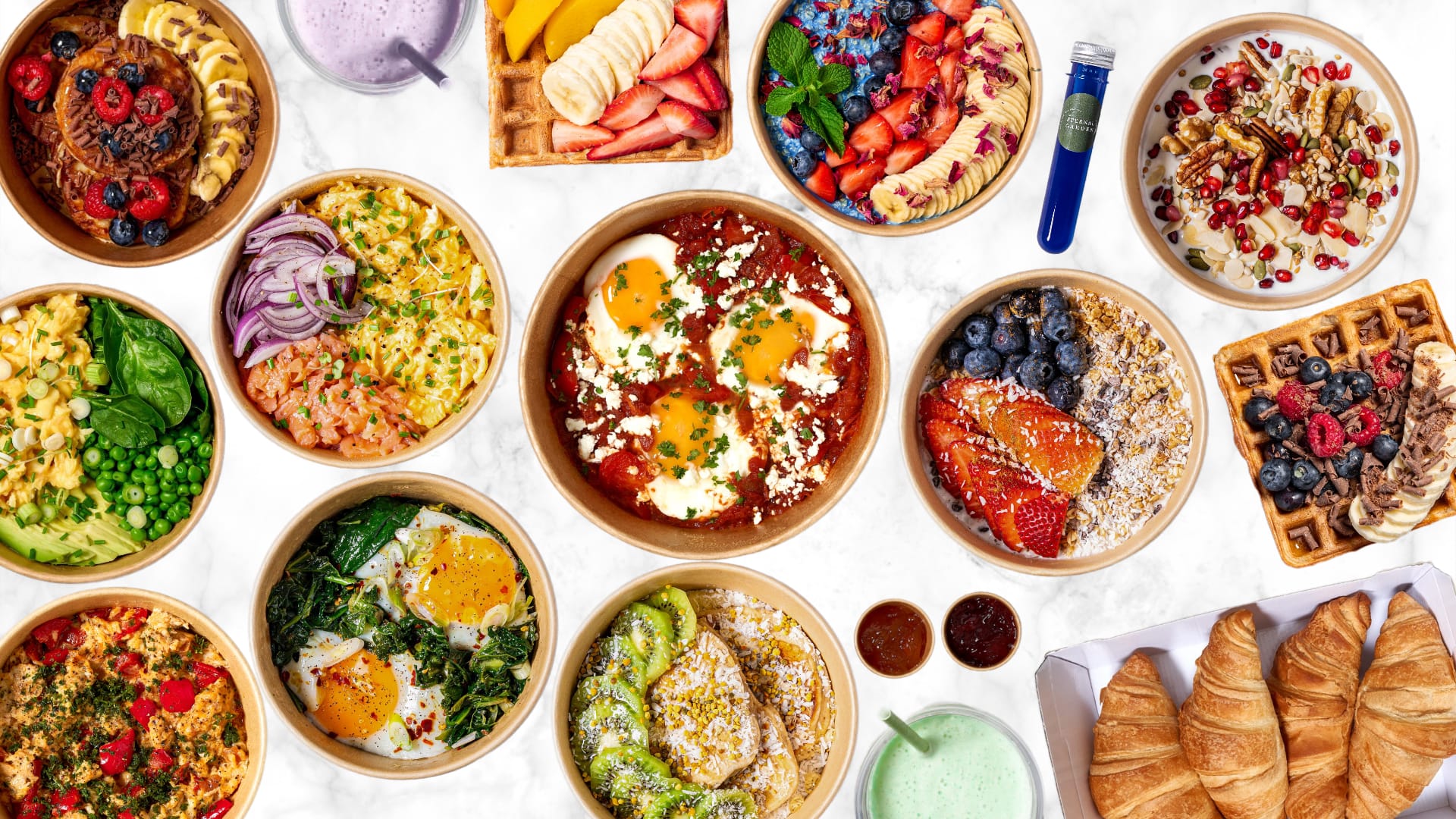 Choose any two smoothies of your choice (and add as many Boosters as you want!) Photo includes serving suggestions.£17.00Breakfast Pot & a Superfood Shot 🥣🥚🍇
