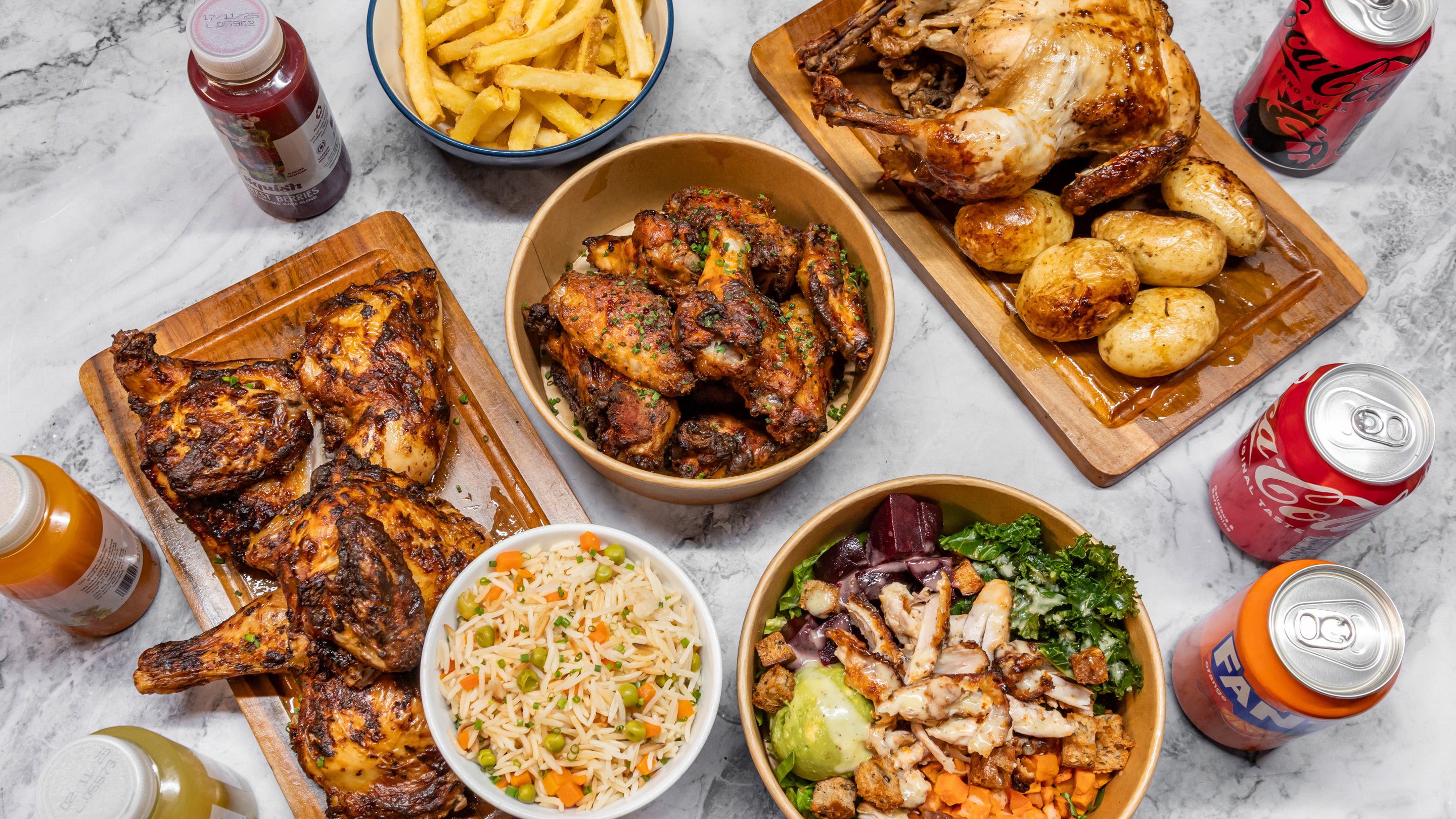 Succulent whole chicken marinated in our signature molasses pepper & honey blend, then flame-grilled until golden and tender. Served with 2 fragrant carrot & pea’s pilaff rice, 2 fresh quinoa slaw and 2 seasoned fries, this dish brings together sweet, smoky and tangy flavours in every bite – perfect for any appetite.£22.00Enough for 3
