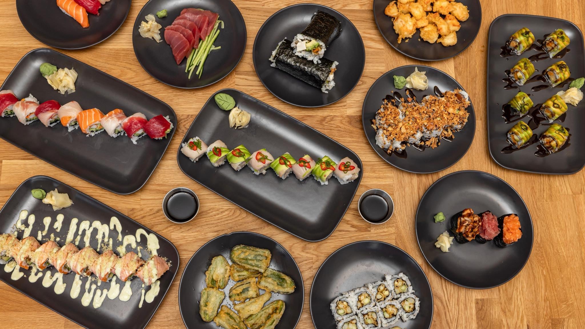 A luxury feast showcasing Omi’s finest artistryDesigned for sharing — the ultimate sushi experience.Tsunami, Magma, Nitro & Mango Flame Rolls (32pcs) Salmon Crunch & Teriyaki Crunch Rolls (16pcs) Salmon & Tuna Nigiri (10pcs)Chef’s Sashimi Selection (10pcs) Cucumber, Avocado & Sweet Potato Rolls (24pcs) Includes: Pickled ginger, wasabi & soy sauce.£114.99