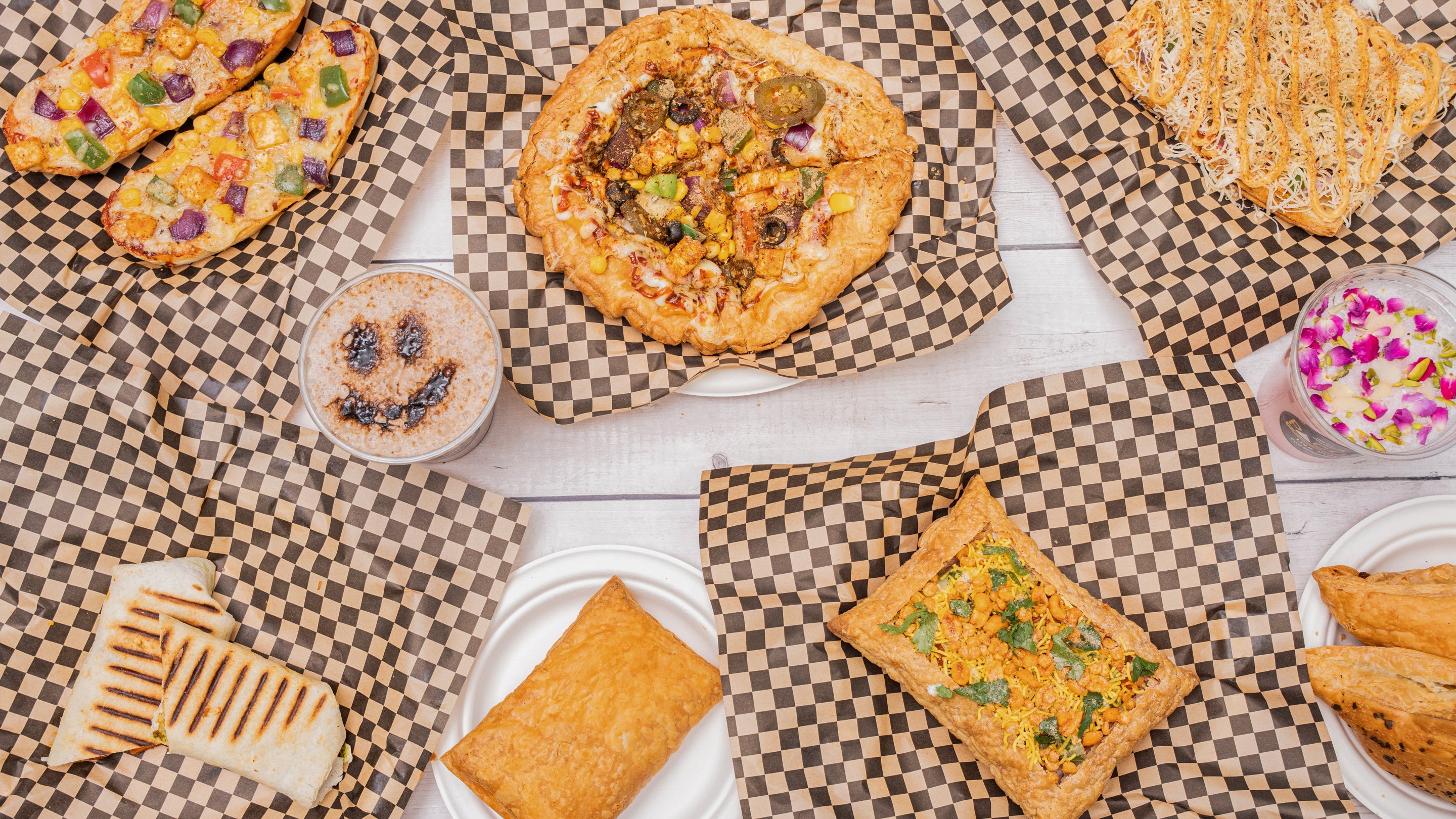 Tortila filled with potato stuff, green chutney, vadapav special chutney, cheese and topped with seasoning£7.15