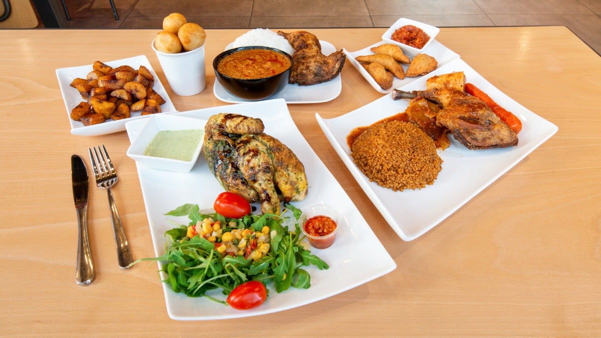 Whole chicken, three grilled chicken wings, three fried wings, and two lamb chops. Served with two fries, jollof rice, rice n peas and coleslaw.4486 kcal