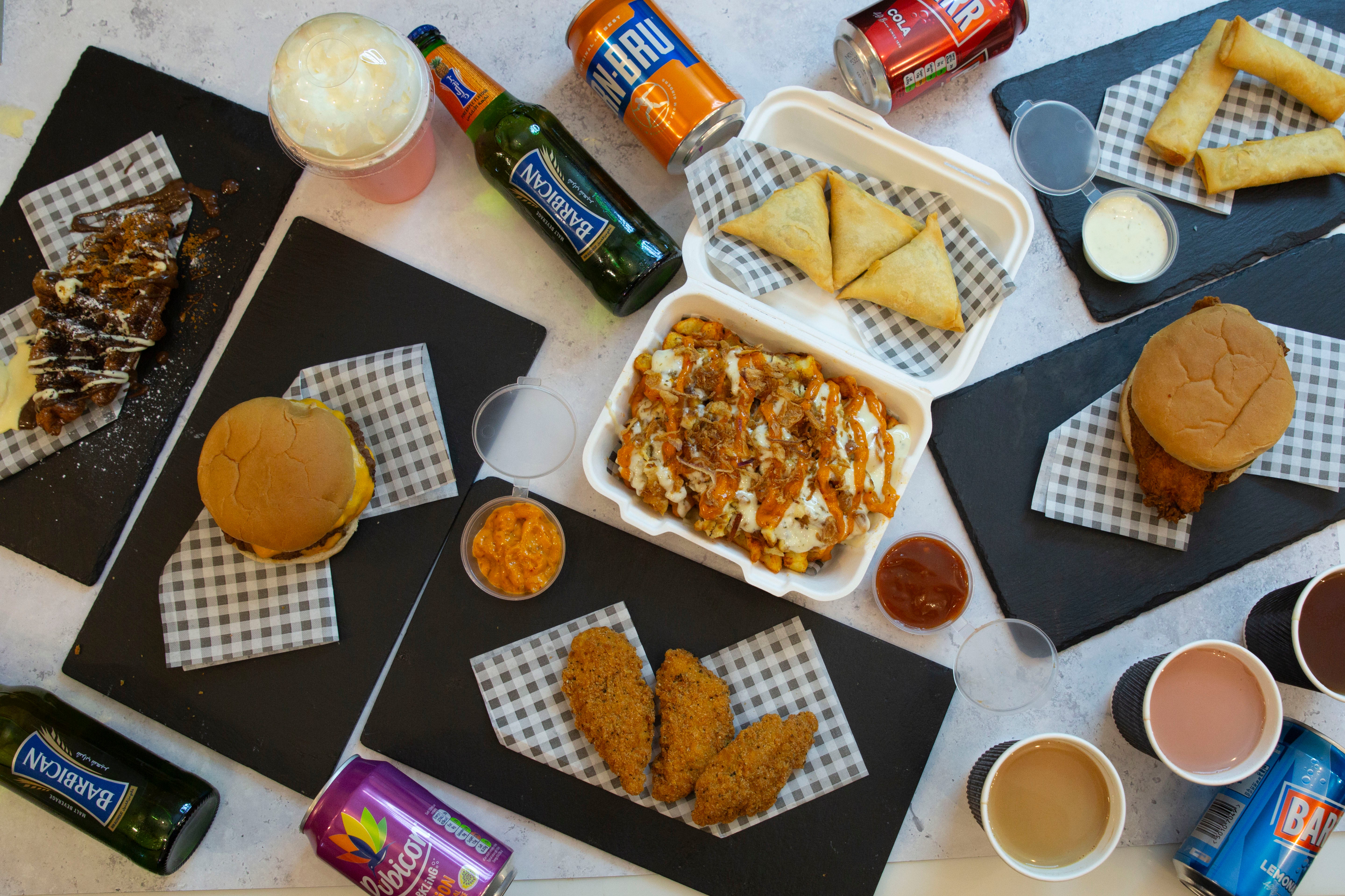 Big Cluck Stack or Mac Daddy or The Crossover, Loaded Fries, 3 Tenders or Wings, 3 Onion Rings, Mac and Cheese(small), Mojito or Can Drink.£25.00Munchbox 4