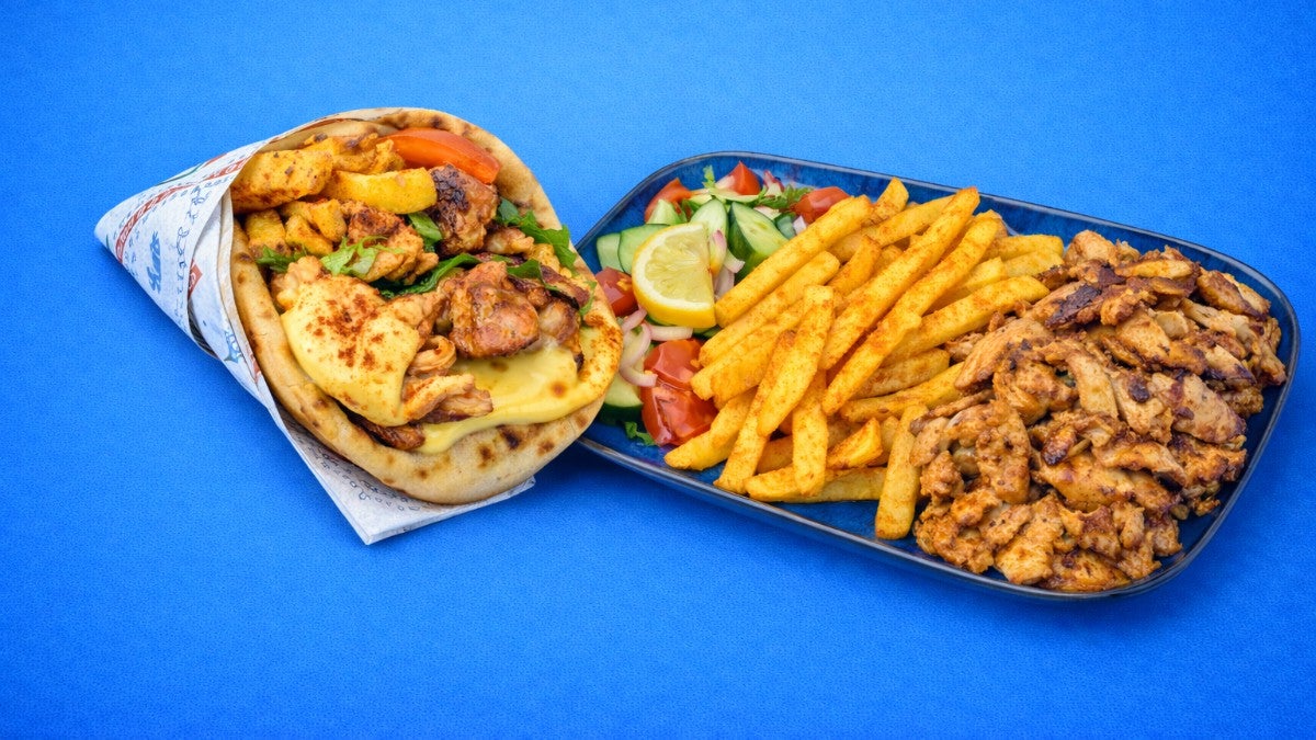 A warm, fluffy Greek pitta stuffed with your choice of meat or halloumi cheese, fresh salad, crispy fries, and your favourite sauce.4.7(87)£9.50PopularPortion Box