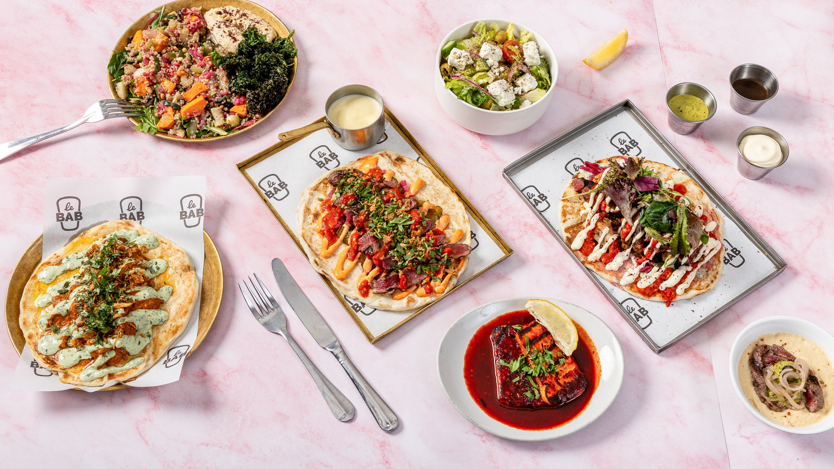 Charcoal grilled sirloin steak, pickled cabbage, pickled cucumber, sweet chilli mayo, chilli sauce crispy onions and fondue sauce, finished with coriander and parsley.£19.00Dirty Bab