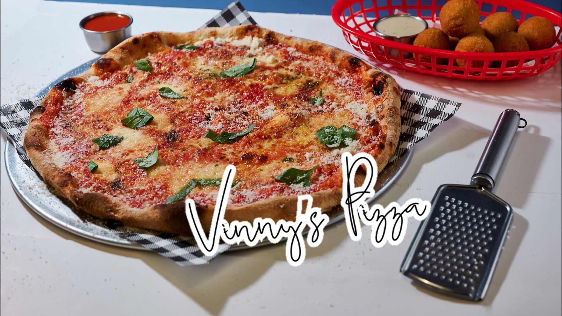 At Vinny’s, we don’t mess around. This is real-deal, Italo-American pizza. Bold flavors and recipes that know their way around a neighborhood. Inspired by old-school joints, late nights, and guys who take their food very seriously. You’re hungry? Forget about it. We got you covered.Free delivery