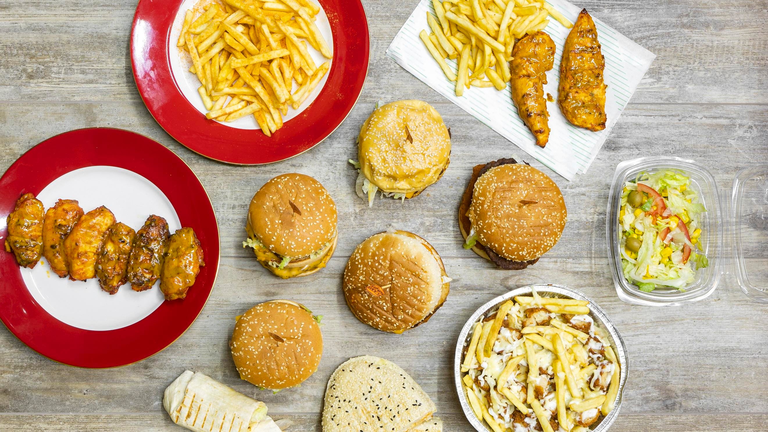 Three chicken cubes, three chicken gyro portion, a portion of halloumi, portion of paprika and oregano fries, three warm pita, 8oz dip of choice.£38.955.Platter for four