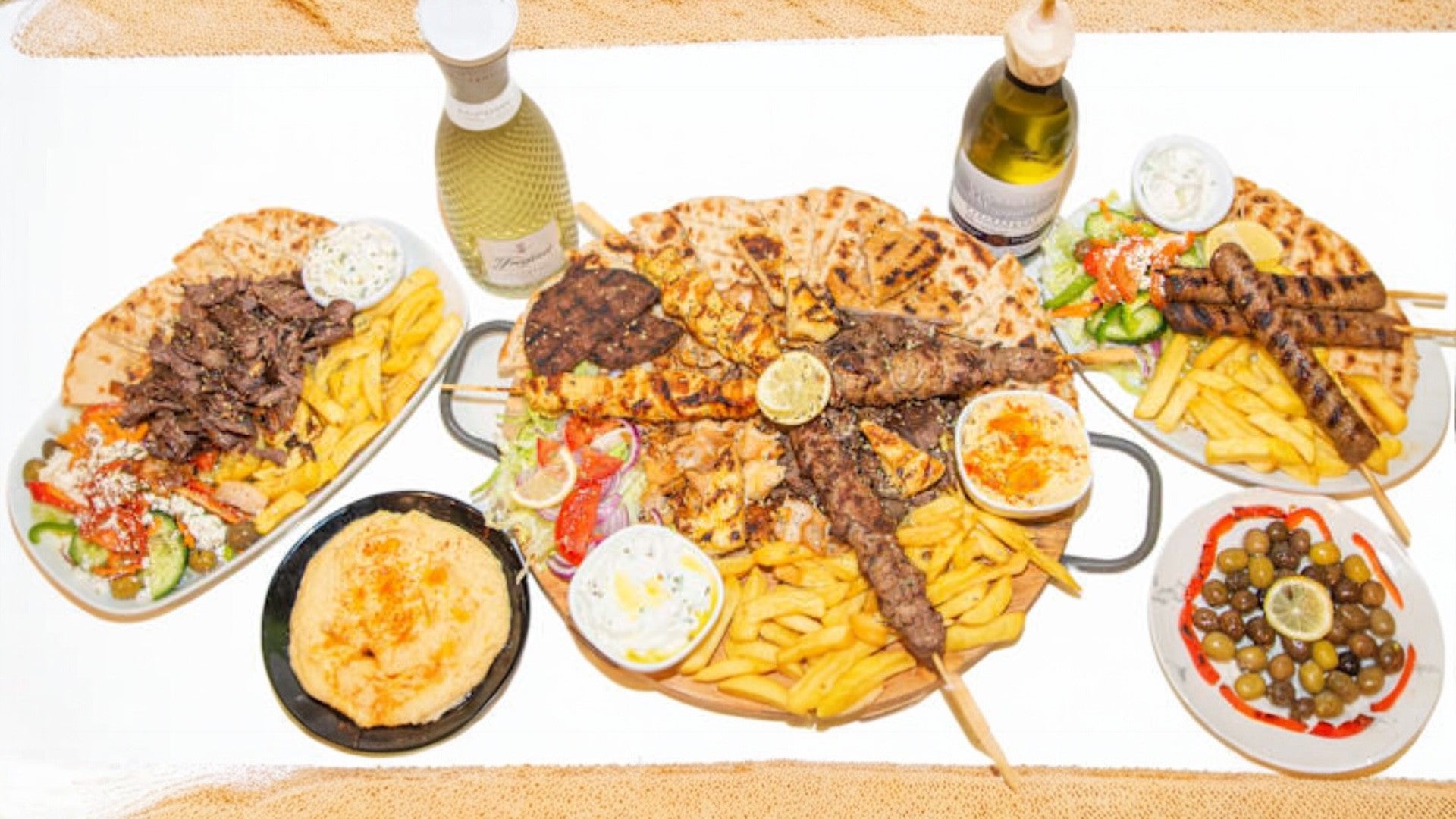 Chicken gyro, lamb gyro, one chicken kalamaki, one lamb kalamaki, one lamb chop, one beef bifteki, two pittas, with salad and choice of chips, two dips, plus two cans of drinks. A perfect meal to share for two.Halal£39.99🍽️ Sharing Platter for Four