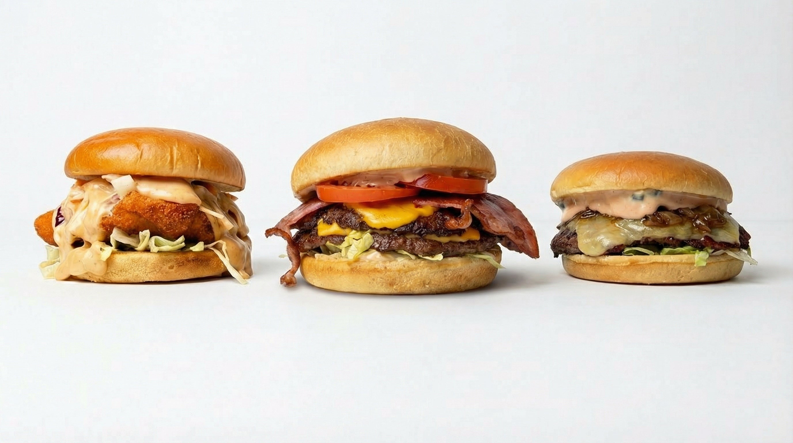 Crispy panko-crumbed chicken breast, rich Japanese curry sauce, fresh shredded slaw, served in a soft toasted brioche bun.Comforting, mild, and full of flavour — a proper classic that never disappoints.⭐ Customer favourite£10.95Buy 1, get 1 freeKorean Spicy Fried Chicken Burger
