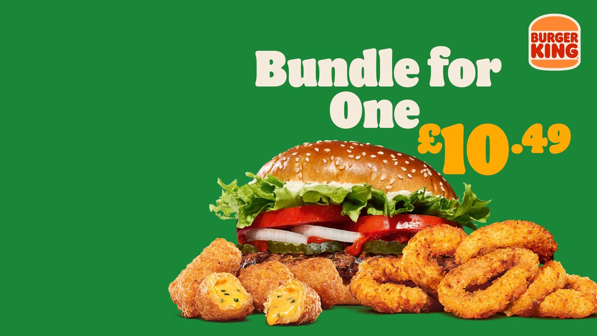 Ready for kick off? Choose 2 Burgers from: Steakhouse Angus, Bacon Double XL, Whopper or Chicken Royale. 2 Large Fries (upgrade to Cheesy Loaded King Fries for £1 or Cheesy Bacon Loaded King Fries £1.50 additional). 6 Chicken Nuggets. 6 Chilli Cheese Bites & 6 Onion Rings… a classic formation£39.99Bacon Double Cheeseburger bundle for 2