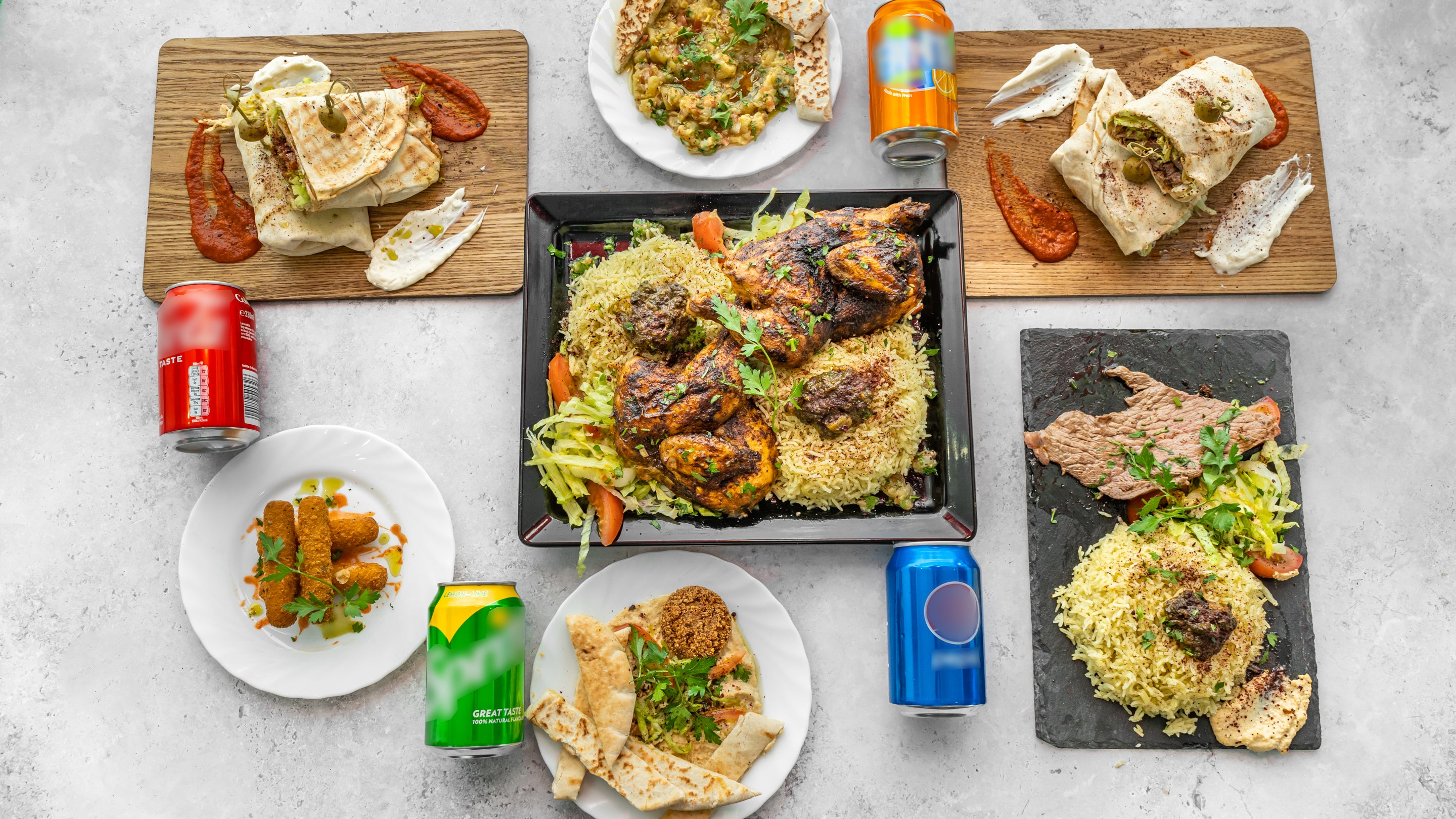 Selection of chicken shawarma, salad selection, fries or rice and home made sauces£12.99Loaded mince lamb box