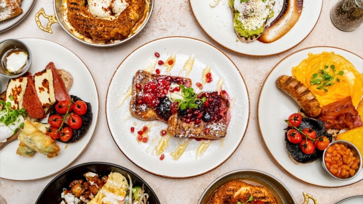 Hashbrowns topped with scrambled eggs, smoked salmon, garlic yogurt & red onion salad.£14.85Shoreditch Breakfast