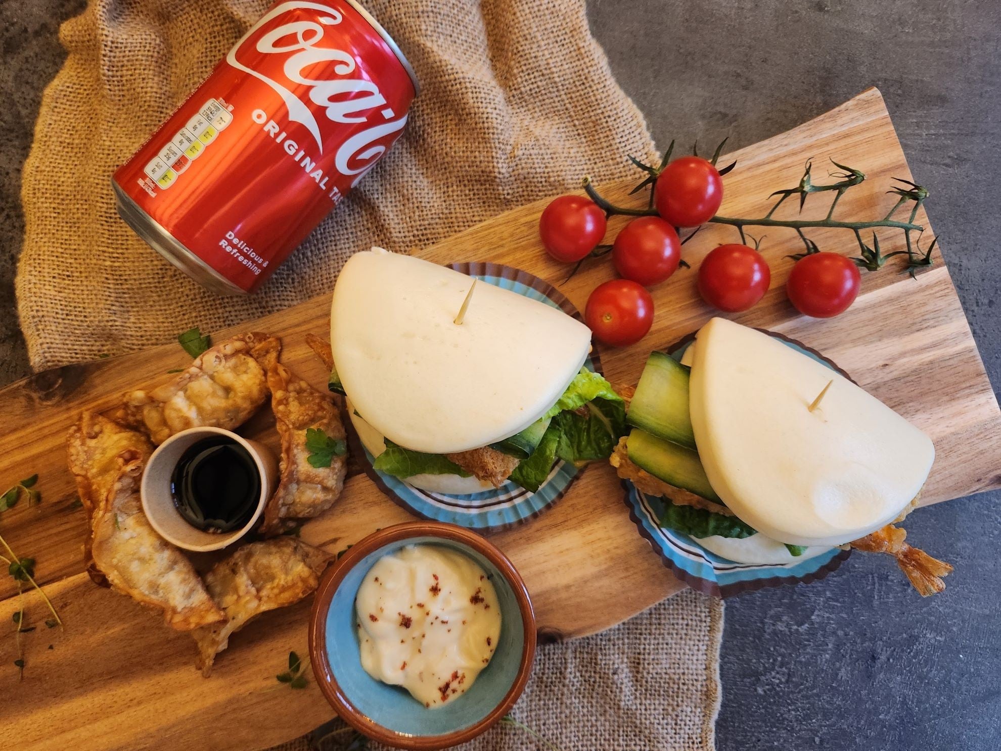 Choose any bao from our menu, your choice of 3 Gyozas or 2 Spring Rolls, and a drink£9.95HalalBao Meal for 2