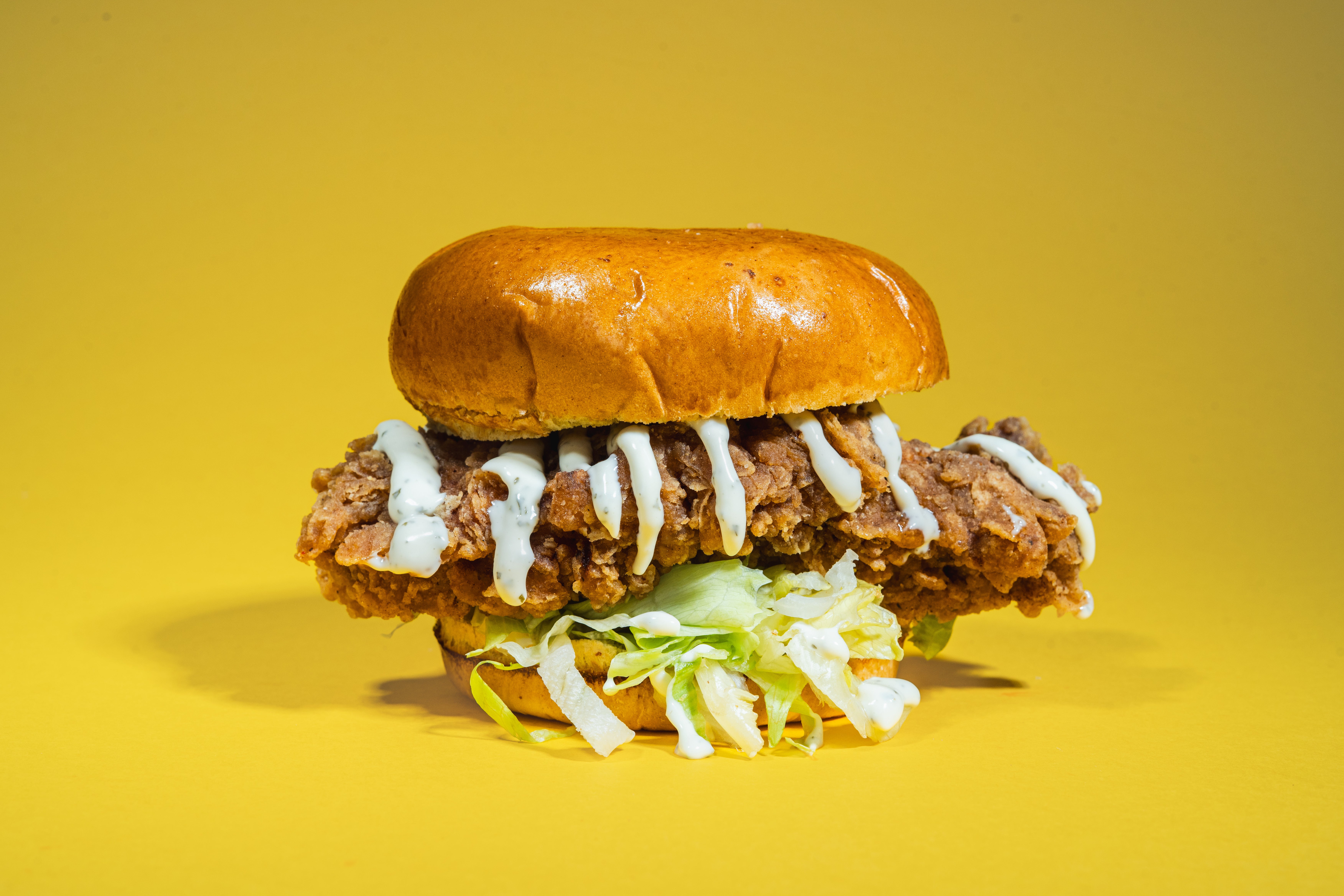 Our new chicken slider, a crispy tender in a potato bun with lettuce mayo and pickle, with a portion of cajun fries in one box.£7.99Crispy Chicken Breast Burger