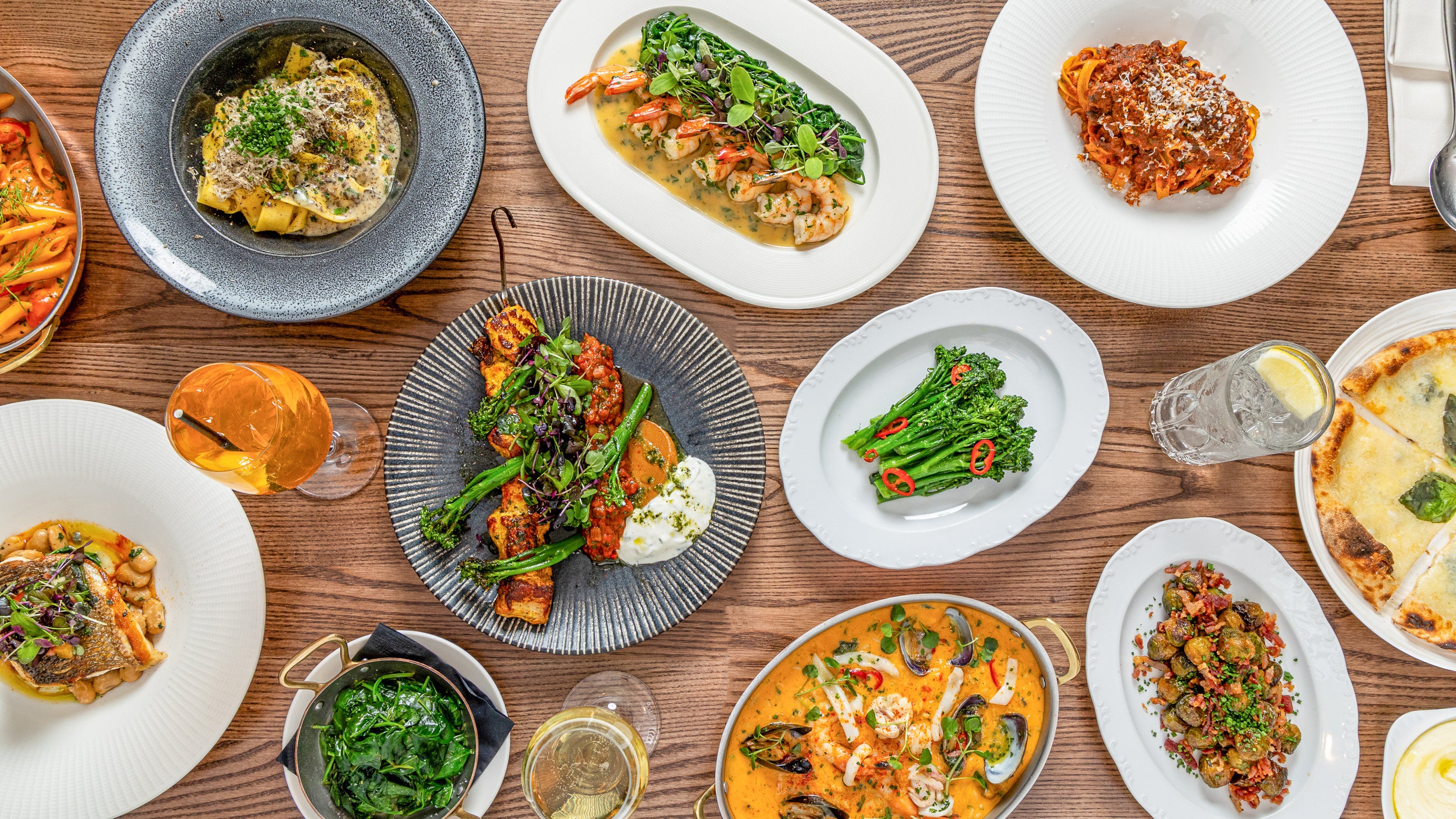 Prawns a la plancha, polenta, 'nduja, and Mediterranean dressing.£35.00