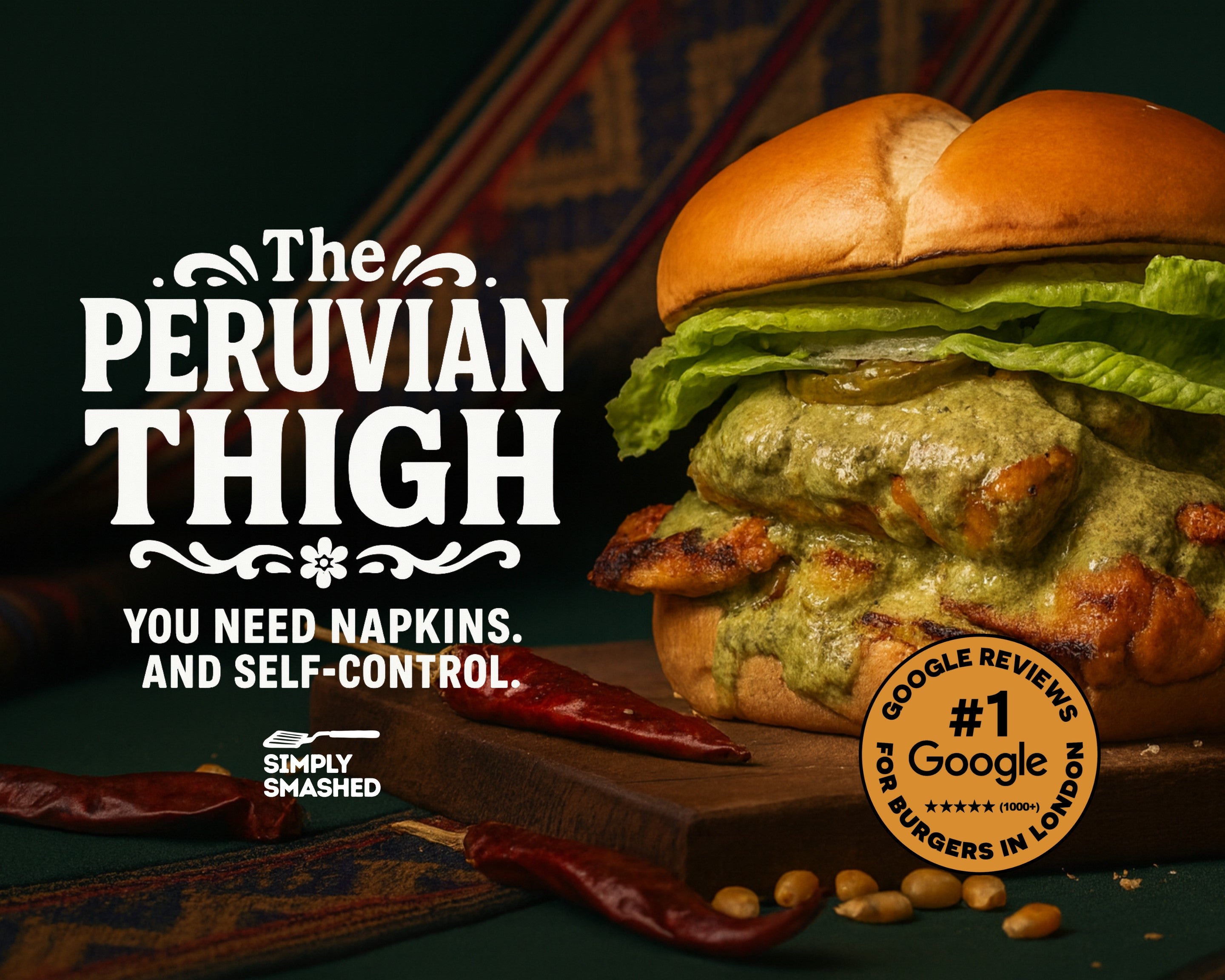 Finally, our highly requested on social media, the chicken thigh burger, is finally here! Juicy buttermilk chicken thigh breaded with a carefully selected combination of North African spices accompanied with caramelised onions, pickles, and American cheese, is carefully sandwiched between a blend of our French sauces and a buttery brioche bun. It's the ultimate chicken burger you don't want to miss out.£9.99Halal*New* The Peruvian Thigh