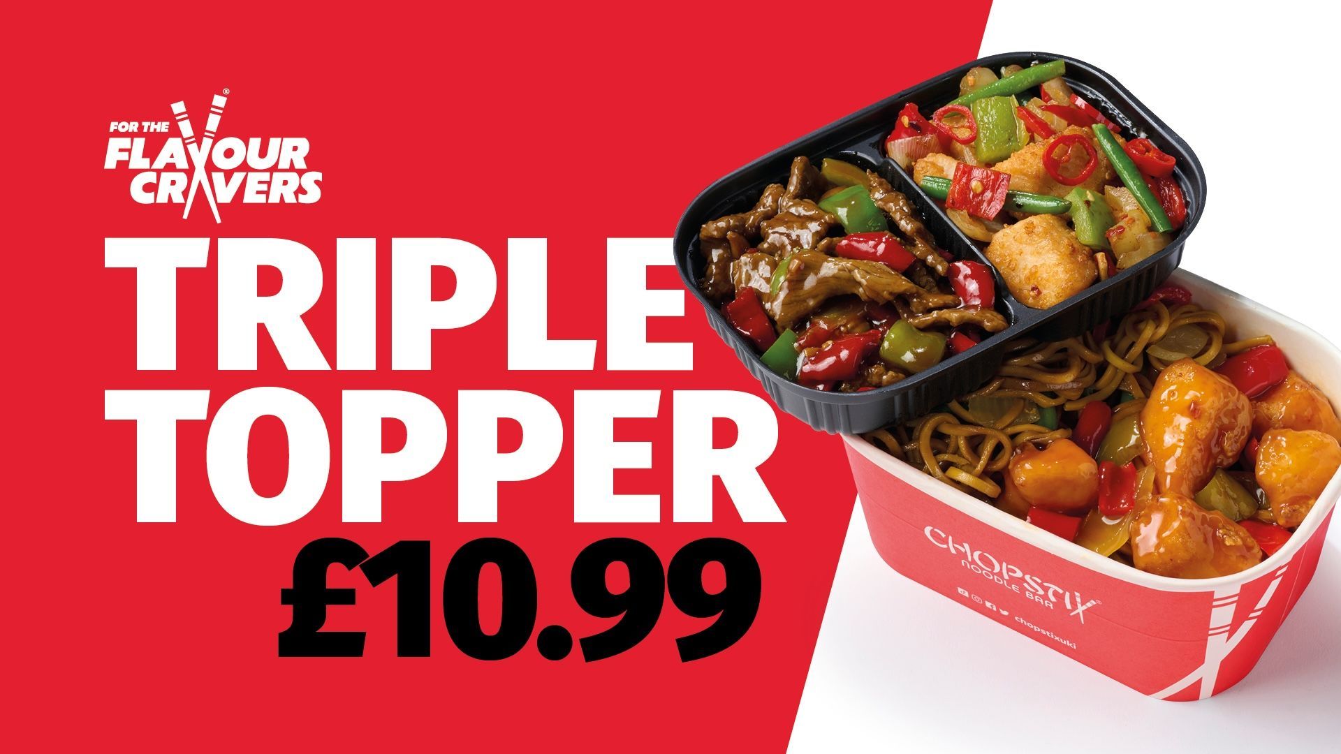 Choice of base plus ANY 2 toppings!£8.99PopularTriple Topper Box 🥡🥡🥡