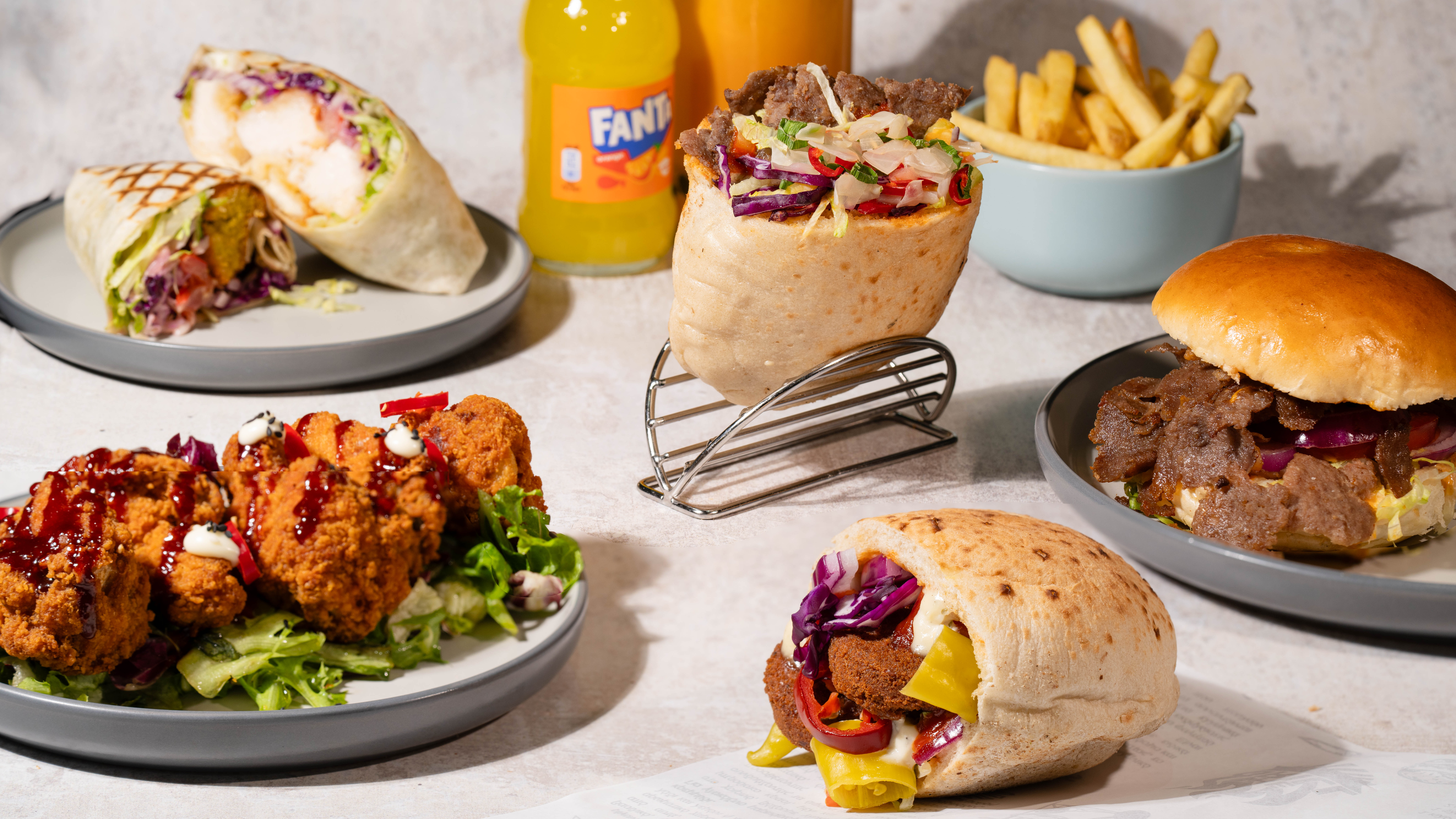Indulge in the opulent essence of our signature German beef doner kebab, enveloped in a toasted wrap with fresh lettuce, juicy tomatoes, and piquant red onions. Complemented by zesty pink slaw, pickled green chilies, and a trifecta of harissa, garlic, and house kebab sauces, this creation offers a luxurious explosion of savory richness.£7.46£9.95Habibi wrap meal deal