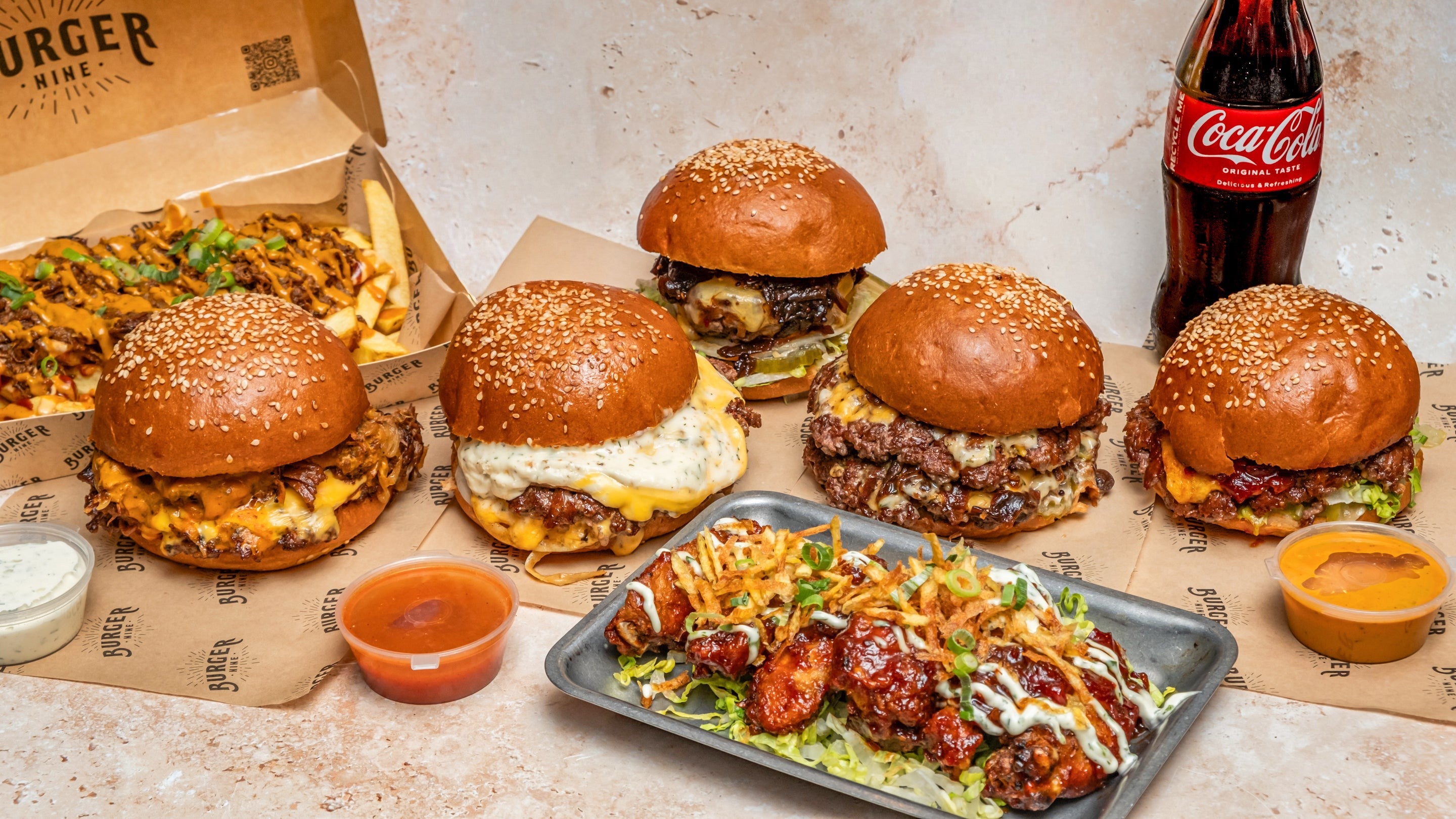 3 Burgers, Chicken wings and 3 drinks£44.20£52.003Burger Nine Bundle for 4