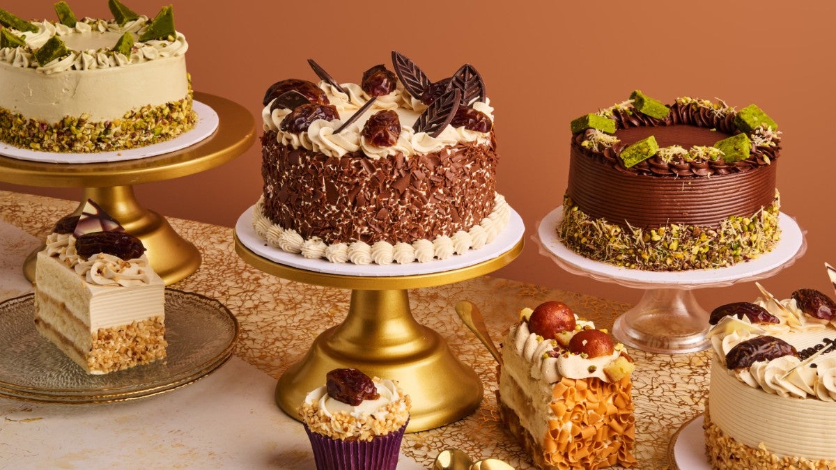Indulge in a luxurious fusion of flavors with our Red Velvet Dubai Chocolate Round Cake. This masterpiece features a soft, moist red velvet sponge layered generously with velvety pistachio cream and our signature Dubai mix. The sides are beautifully adorned with classic red velvet crumbs, adding both texture and visual elegance. On top, smooth Nutella piping swirls gracefully across the surface, offering a decadent chocolate touch. To finish, the cake is crowned with delicate sprinkle of suter pheni and nibbed pistachio mix, and a vibrant assortment of fresh strawberries, blueberries, raspberries, and blackberries—bringing color, freshness, and a hint of natural sweetness. A truly exquisite creation, perfect for celebrations or moments deserving a taste of indulgence (Serves 6). Storage information: Cakes should be stored in the fridge immediately and consumed within 24 hours. Allergen warning: This cake contains Wheat, Milk , Soya, Nuts (Pistachio, Hazelnuts). Calories displayed are per portion.£41.996" Royal Medjool Date Delight Cake