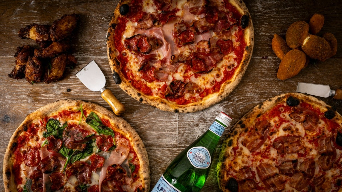 Any 3 Large Sourdough Pizzas , with any 2 starters and a bottle of drink.£39.99£68.953