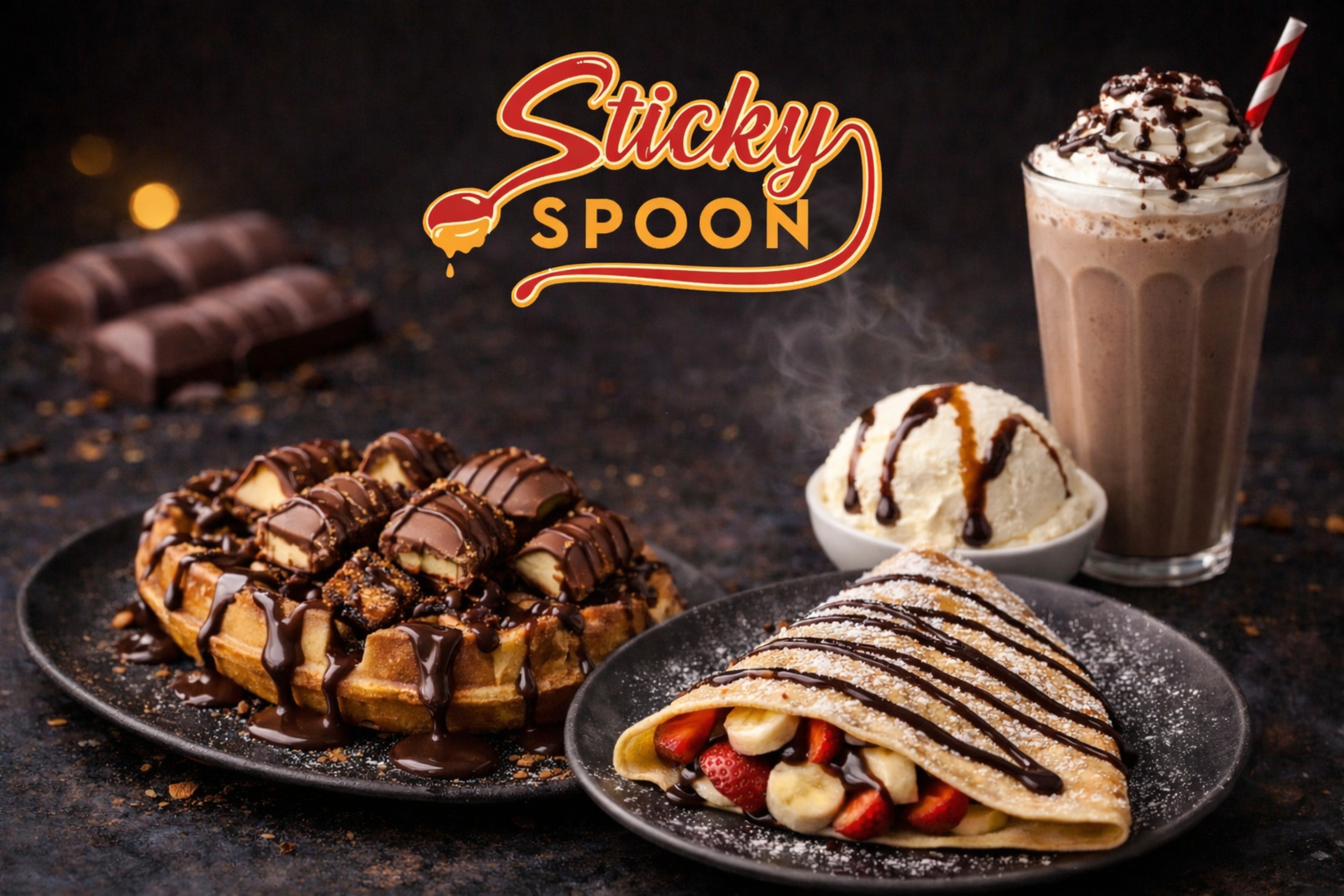 Waffles, Crepes, American Pancakes, Cookie Dough, Brownie, Milkshakes, Thickshakes... Sticky Spoon is a ghost kitchen for desserts and located in Hemel Hempstead. Making the food with love and care.15% off entire menu